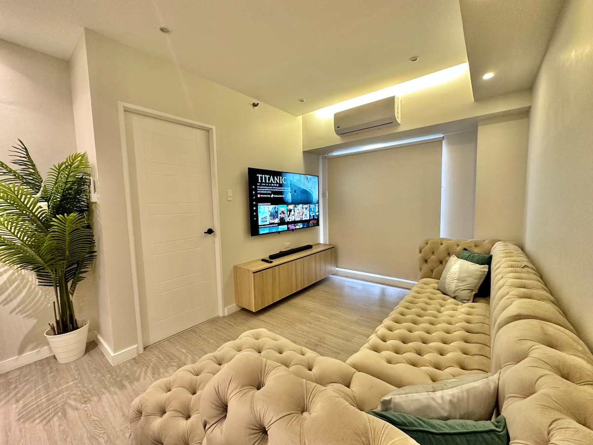 Escape to a high-floor suite with breathtaking BGC skyline views, cinematic JBL surround sound, and a 55-inch Full 4K Smart TV with LED mood lighting—your ultimate movie night haven. Take in the scenery with high-grade binoculars, then sink into the ultra-comfy Emma® Cloud-Bed for a perfect night’s sleep. Far from city noise yet close to everything, enjoy fast WiFi, Netflix, Disney+ and more! Truly a fully equipped space for a seamless, unforgettable staycation experience with Cinema 27!