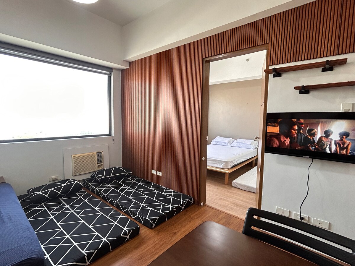 Fully furnished unit with divider for bedroom. Walking distance to groceries, convenience stores, restaurants, malls, banks, bars. Active night life! ❤ Pool, Sauna & Gym Access (w/ fee) ❤ 55" 4k UHD TV + A/C + Workspace ❤ Streaming apps available using your own account ❤ Coffee, fresh towels, and essentials provided ❤ Filtered & Alkaline Drinking Water ❤ Child & Dog-friendly ヅ Accessible paid parking off premises ヅ Reliable WiFi perfect for remote work