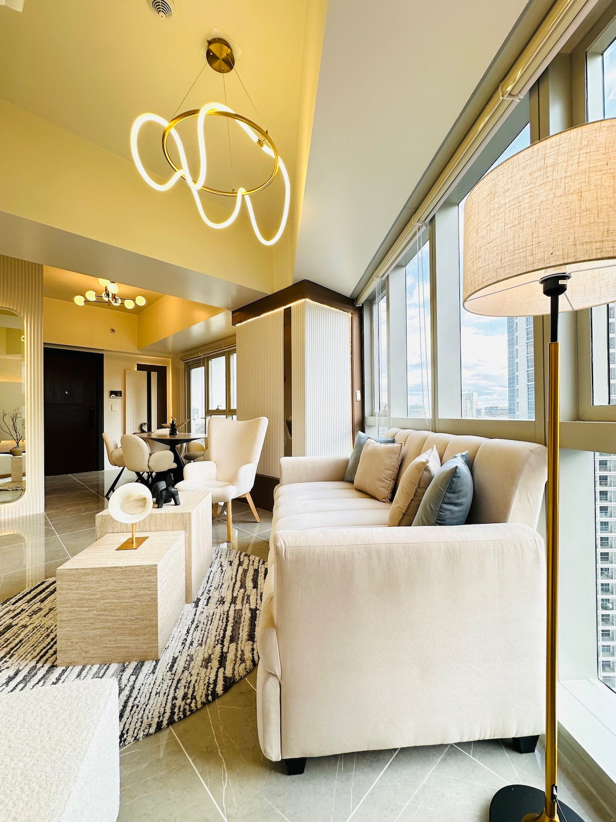 Uptown Arts Residence Unwind in this bright and stylish space filled with natural light. The Modern Sunlit Lounge features cozy furnishings, a fully equipped kitchen, and a calm atmosphere perfect for work or relaxation. Located in Uptown BGC, just steps from Uptown Mall, cafés, and restaurants, you’ll enjoy both comfort and convenience. Enjoy access to the pool, gym, and top-notch amenities, your serene escape in the heart of the city.