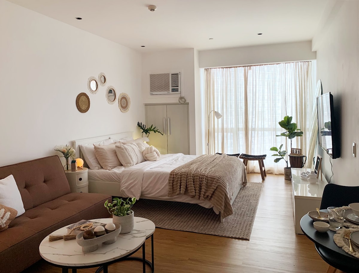 Boho Hideaway at Eastwood Luxury Residences A place of peace and quiet with our Lord. It is a charming and cozy 40 sqmtrs 1 bedroom condo unit nestled in the heart of the city, offering a bohemian resort-inspired escape for guests seeking a unique and relaxing stay. urban retreat combines colors, cozy furnishings to create a welcoming space where guests can unwind and immerse themselves in a bohemian paradise right in the midst of the city's hustle and bustle.