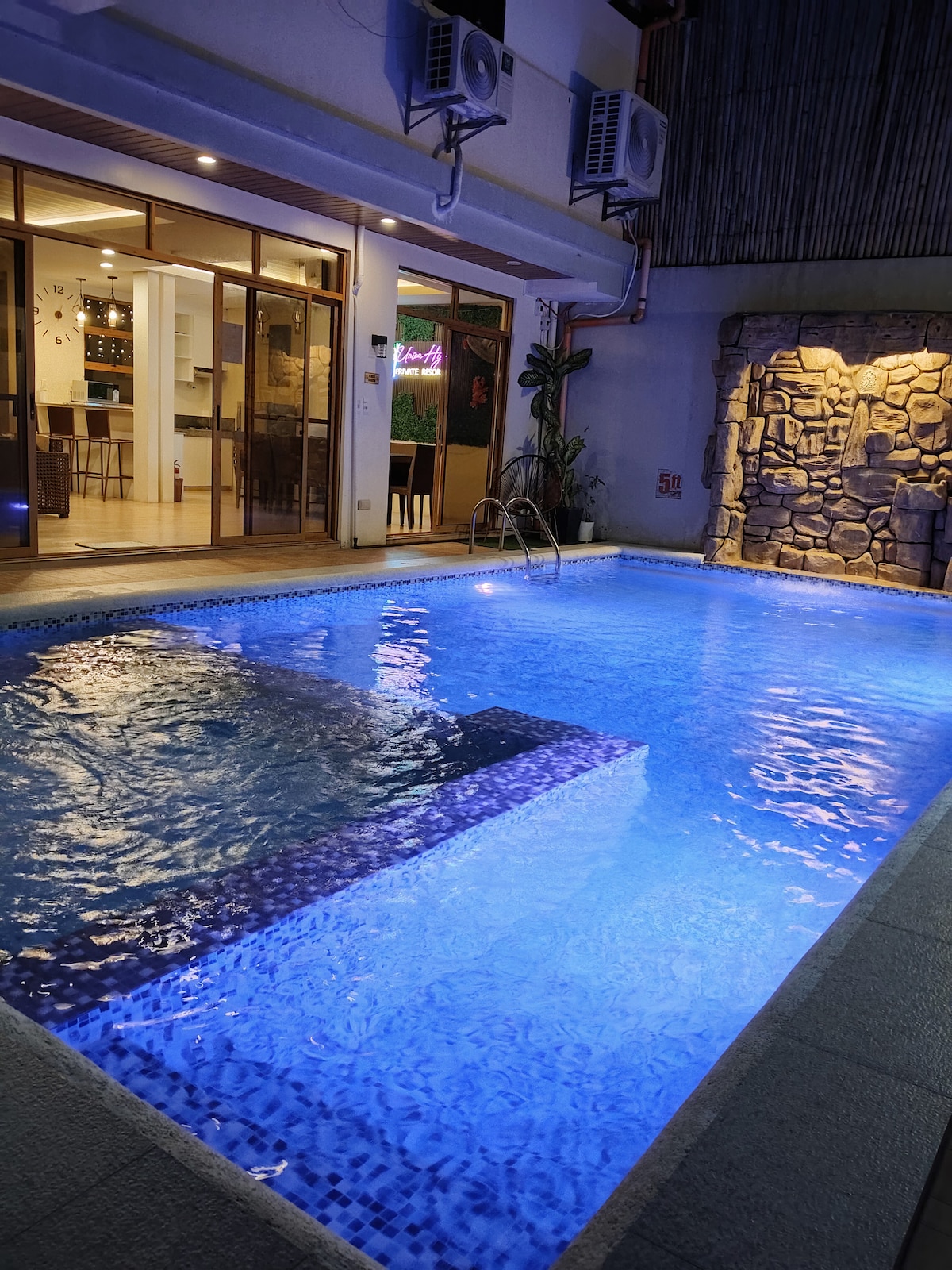 Enjoy The Tropical Villa at Villa Mina, your beautiful escape from the hustle and bustle of the city. Perfect for gatherings & celebrations or if you simply just want to cool off! 🌴 Enjoy: - Private swimming pool (4ft) with water feature - Chic interior design - Outdoor BBQ grill - Air-conditioning - Sofa & Loft-type Beds - Hot showers - Free parking for two cars - Smart TVs with Netflix - Wi-Fi - Kitchen with cooking tools - Karaoke & board games We have more rooms! Inquire to find out 💙