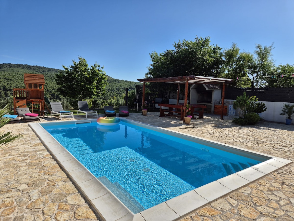 More than 100years old stone house renovated in 2012,is located in the village of Donji Zemunik,14 km east of Zadar. House for 10 persons:about 150 m2 on two floors, nice garden with heating swiming pool,a sauna,and jacuzzi,ideal for family holiday. We have domestic animals since recently in our estate. Children can ride a pony,take a fresh eggs or feed the animals. In neighborhood from this year we have the equestrian club Equo.We can organize riding lessons, riding school and field riding.