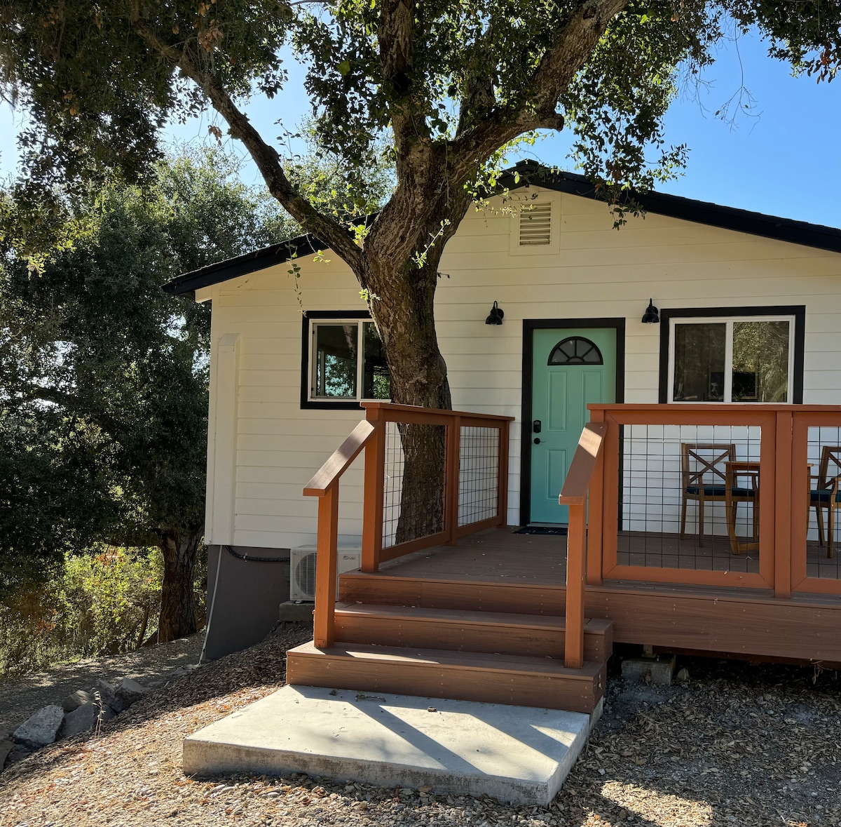 Experience nature's symphony at our enchanting retreat nestled among ancient oaks. Wildlife enthusiasts, rejoice - deer, owls, red tail hawks and more call this place "home" year-round. Panoramic views of golden hills, a sandy seasonal creek, and a pasture frequented by horse riders. Perfect for wine lovers, just minutes from renowned wineries. Enjoy outdoor fun with a hot tub, horseshoe pit, fire pit, and more. Work remotely at the small desk, or simply relax in this haven of tranquility!