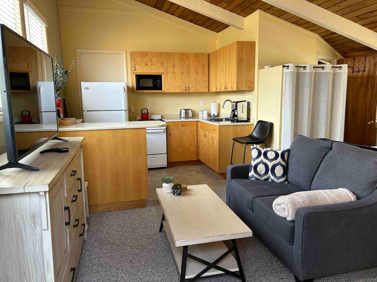 This rustic & charming suite featuring two french doors that open up to allow for morning sunlight or evening sunsets. Sleep under the stars! Large back deck for romantic evenings. Pathways that lead around the property. This suite is perfect for romantic getaways, proposals, romantic picnics and retreats. The Tavern is located just 8 min from town and just minutes from multiple wineries. We offer a quiet suite for you to relax in.