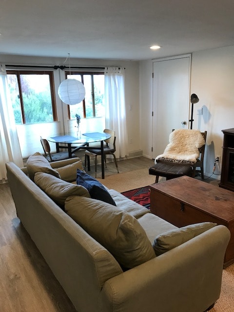The above garage guest suite affords privacy and peace. With its own living space, kitchenette, bedroom and bathroom this 400 sq ft space with a deck, semi-private entrance and dedicated garage space is perfect for your visit to wine country. This listing hosts humans only. Please no pets, please don't ask. We also ask that you do not bring small children, the suite is not suited to host little ones and the max occupancy is two persons, 10 or older.