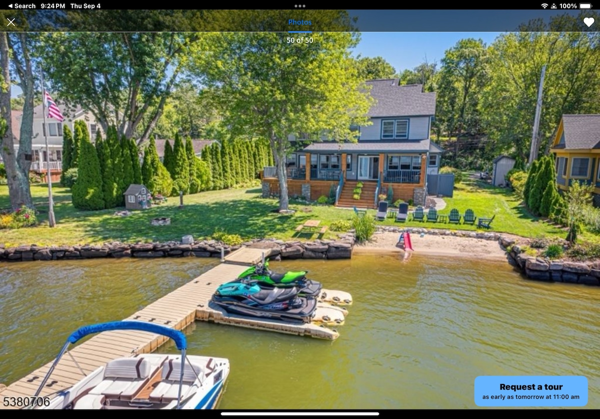 This house is directly on Greenwood Lake. Short Term Rental Permit #34165. There are fantastic views of the lake from every room! The house is comfortable, nicely furnished and fully equipped. Step out through the sliders & you will love the deck with sun loungers, table & new retractable awning for cool shade on the deck. Enjoy 25 ft dock-swimming, feeding ducks, fishing, boating, etc. The yard is a nice level property, which is fully fenced in. Near Skiing, Warwick & Woodbury Commons Outlets