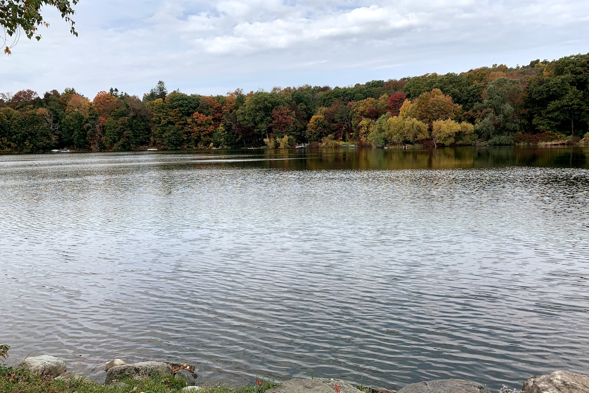 质朴时尚的湖景小屋,距离纽约市50英里