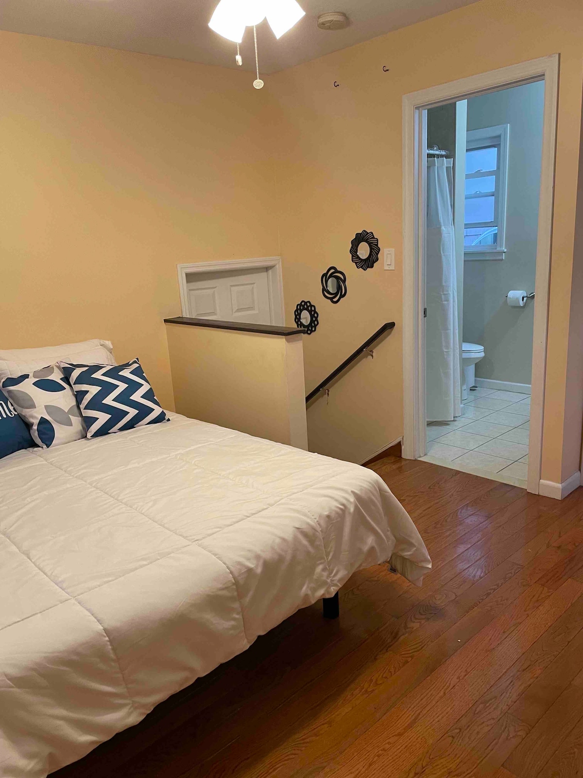 Private home with a guest space on the 2nd story. Located in a quiet residential area with on and off street parking. Suite has a private entrance outdoor seating, personal door key code. Its a 1 bed room with a king bed , living room has a couch w/2 recliners. Access to washer & dryer in common area. Centrally located & 30 min to1 hr to major Airports, NY, Penn, NJ beaches and ski resort. Close to restaurants , shopping . Access to public transportation via bus and train is within minutes.