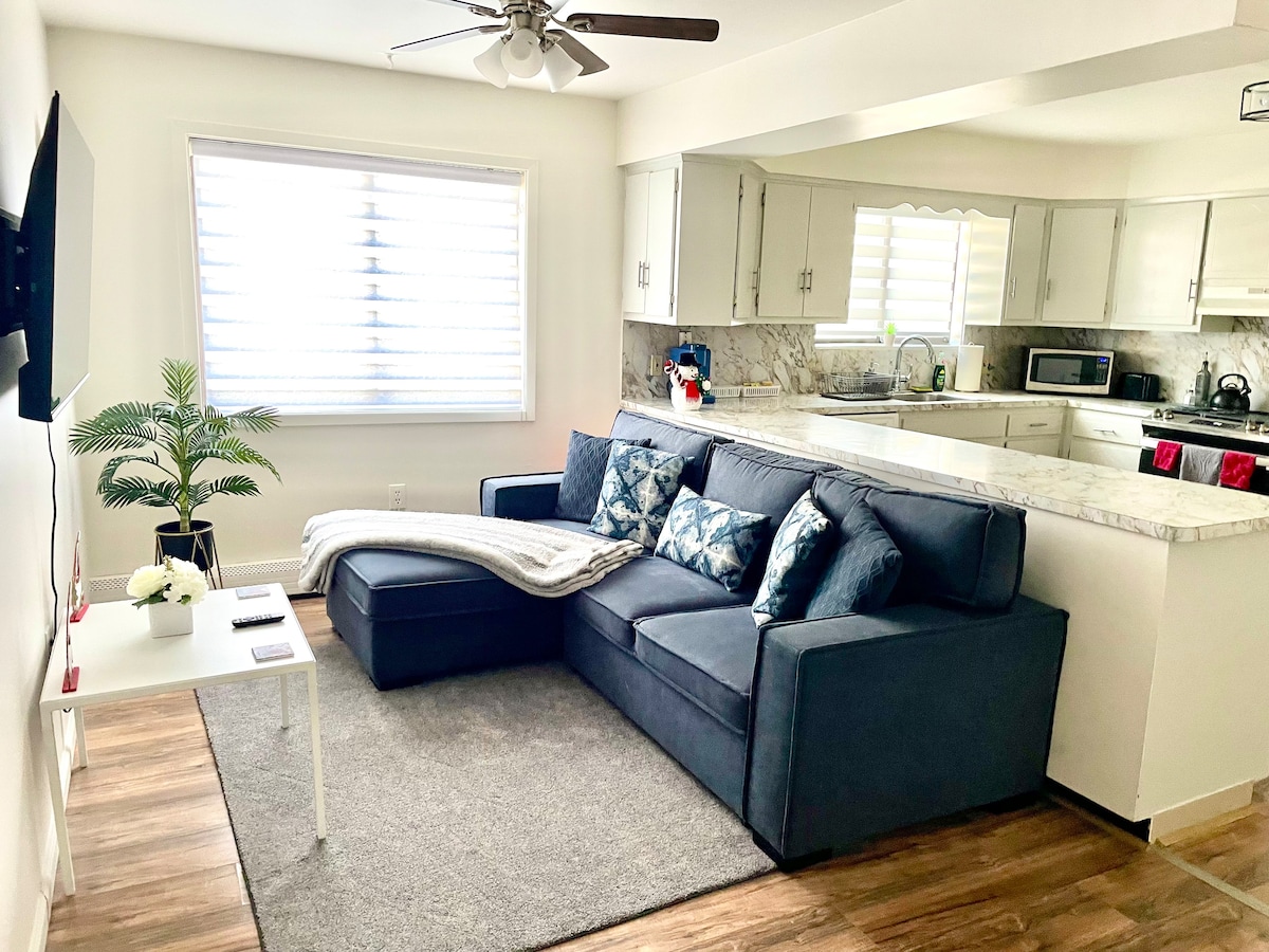 This spacious 1 bedroom 2 bed lower level apartment has accommodations for entertainment and exercise. It has a separate entrance and 1 free parking on premises. It is conveniently located where the side street goes right into Garden State Mall and NYC via bus or driving in minutes. Fully equipped kitchen and wifi for comfortable workspace. In extra efforts to ensure our guests are comfortable, we provide coffee and tea to help them get the day started with a good foot forward.