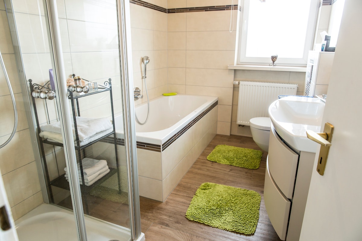 Genieße Ruhe & Natur in unserem sonnigen Landapartment für bis zu 4 Gäste. Bad Füssing & die Autobahn sind nur wenige Minuten entfernt. ✅ Voll ausgestattete eigene Wohnung (incl. Handtücher, Bettwäsche) ✅ Gratis WLAN, Kaffee & Tee ☕️ ✅ Smart-TV mit (Netflix, Prime & Co) ✅ Kostenfreie Parkplätze & Radstellplätze ✅ Gratis Babybett auf Anfrage ✅ Haustiere erlaubt Die Wohnung verfügt über alles nötige & hat 1 Schlafzimmer mit Doppelbett & ein Doppelbett im Wohnzimmer. Wir freuen uns auf Euch😊