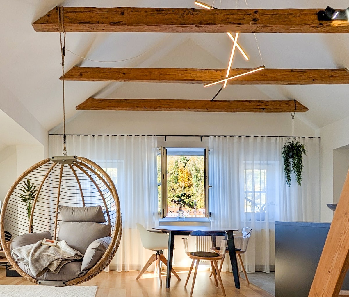 Welcome to the “Vogelnest” penthouse apartment 🕊️✨ Presented by SMURMELHOMES – your retreat above the rooftops of Passau. We are delighted to welcome you to our modern, light-filled apartment on the fourth floor. We want your stay at the “Bird's Nest” to be unforgettable – full of lightness, joy, and relaxation. So just pack your anticipation – we've taken care of the rest for you. We look forward to seeing you, Jennifer & Stefan