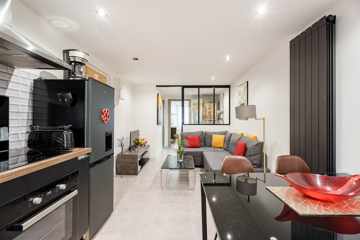 Studio lumineux entièrement refait à neuf ! ☀️ Logement à deux pas de la gare, proche de l'hyper-centre et de toutes les commodités. Immeuble avec ascenseur, calme, récemment rénové et totalement sécurisé. Entièrement équipé : lit queen size, machine à laver, lave vaisselle, machine à café, four, bouilloire, grille pain, sèche cheveux, fer à repasser, ...
