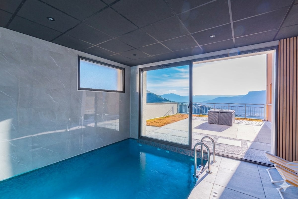 Notre villa, Kyo-Alpes, construite en 2024, est située à la Combe de Lancey, entre Chambéry et Grenoble, et offre une vue imprenable sur les montagnes. Le logement dispose d’une piscine intérieure privée chauffée à 29 °C, d’un espace jacuzzi ainsi que d’un sauna, pour vous détendre dans une atmosphère zen et apaisante. Une décoration intérieure inspirée du style japonais apporte élégance et originalité. Venez découvrir la nature environnante et le charme du Japon au cœur des Alpes
