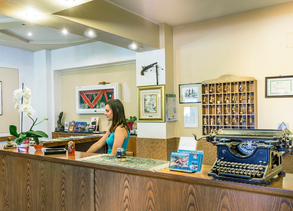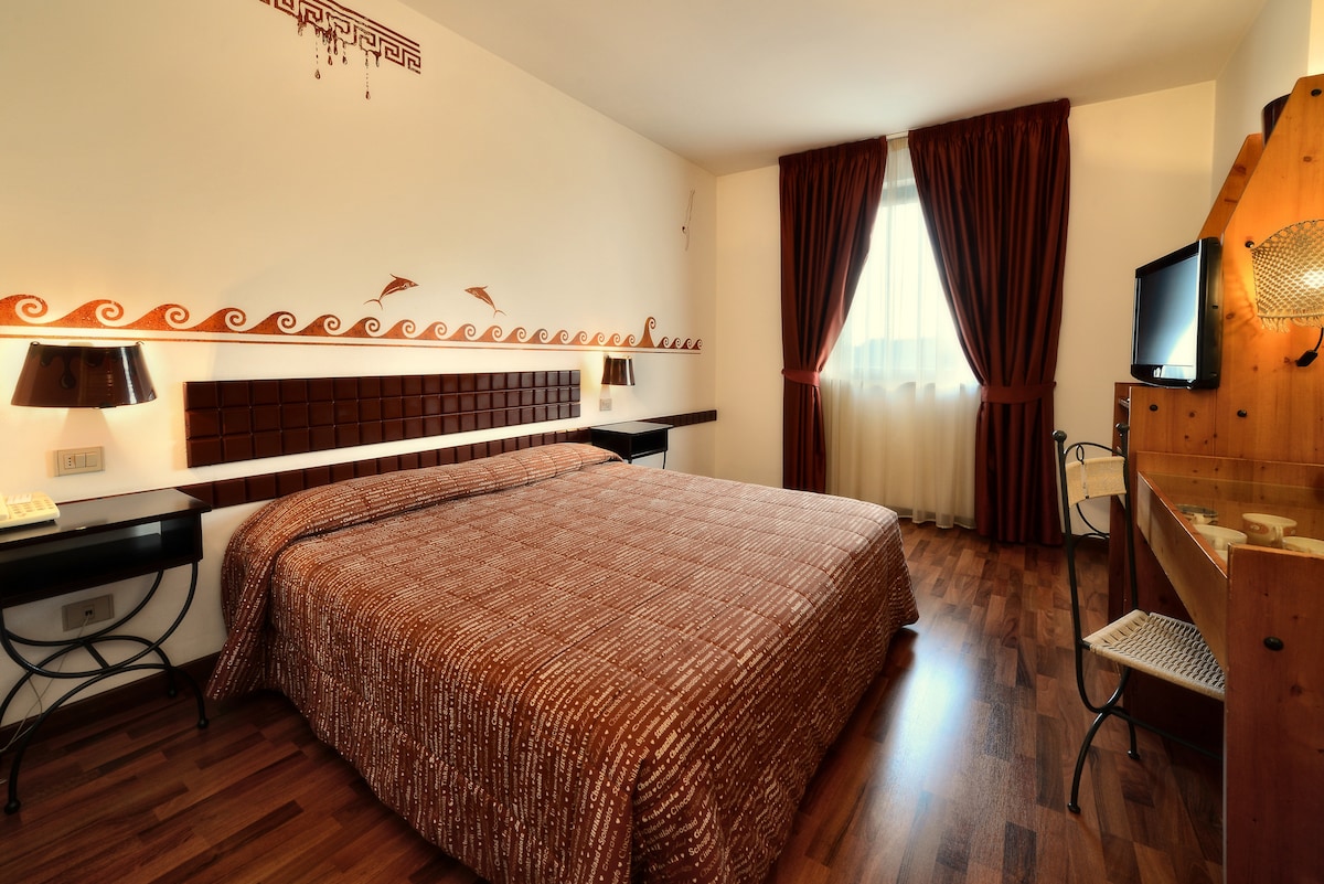 Incantevole struttura a soli 7 km dal centro storico della città, facilmente raggiungibile in auto. Stanza spaziosa, con due letti o letto matrimoniale, dotata di Wi-Fi, aria condizionata, minibar e televisore LCD 32". Il bagno privato offre un'ampia doccia, wc, lavabo, bidet, phon.