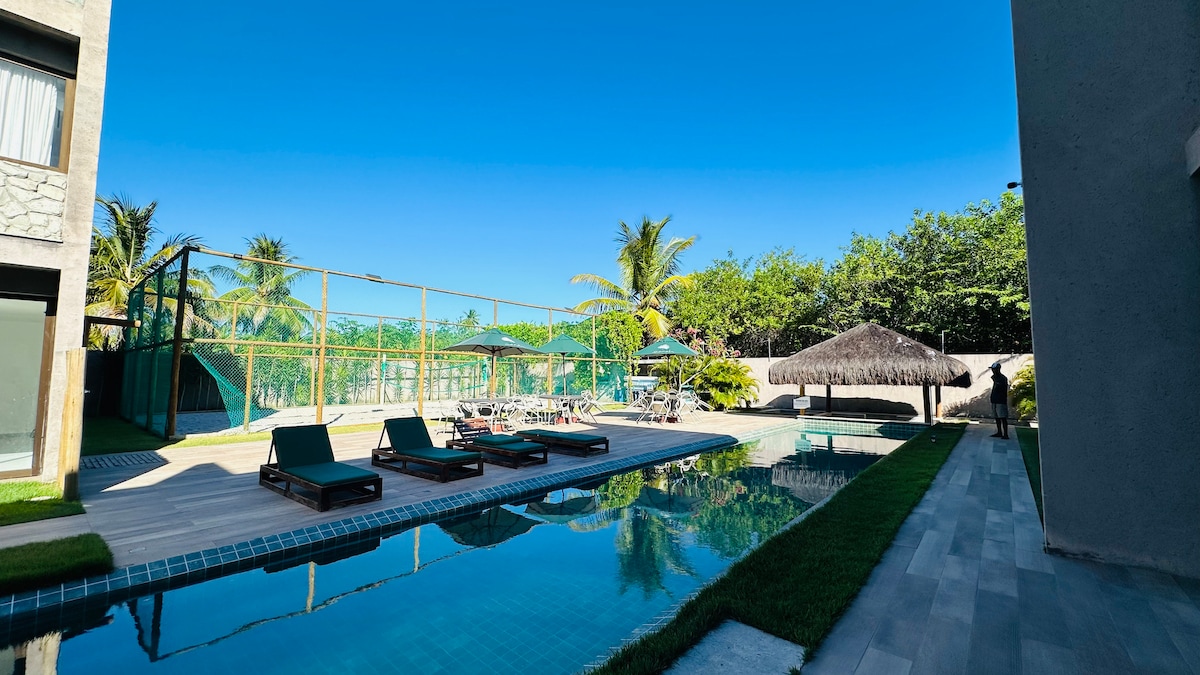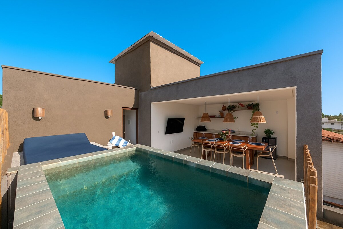 Casa Koral Milagres - New beach house with 3 bedrooms in closed condominium. Front row beach view and direct access to Praia Marceneiro. Private pool and garden. The house is located in Sao Miguel dos Milagres. The house faces the sea with unobstructed view/access to the beach. From the living room you can walk into the backyard with a pool and sand and sea in front of you - 3 bedrooms and 3 full bathrooms (2 being connected) - Queen bed in each bedroom and 4 pullout beds = Beds for 10 people