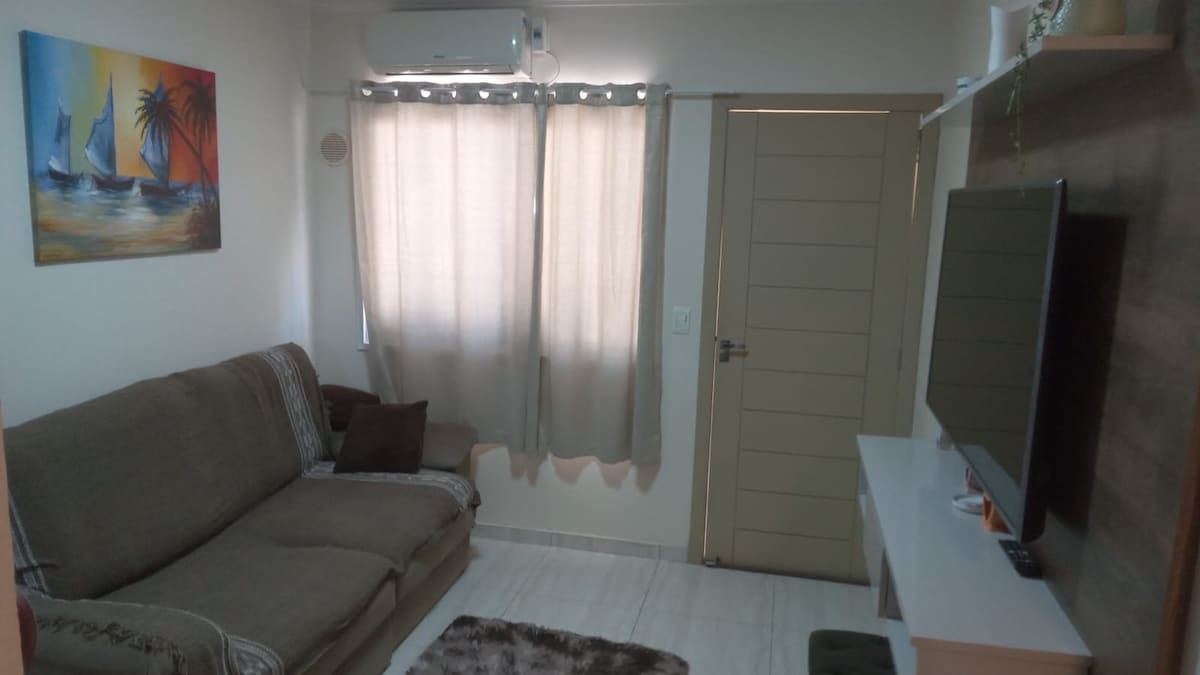 Relaxe com toda a família nesta acomodação tranquila. Ótimo apartamento 2 quartos sendo 1 suíte, churrasqueira, cozinha estilo americana, 2 tv smart, tudo isso sendo a 150mts da praia!!! Apartamento conta com uma ampla sacada REGRAS da casa: • não são permitidos levar qualquer objeto do apartamento para a praia • Não fumar no interior do Apartamento • Não são permitidos festas • Somente hóspedes Registrados • Silêncio é necessário após as 22hs