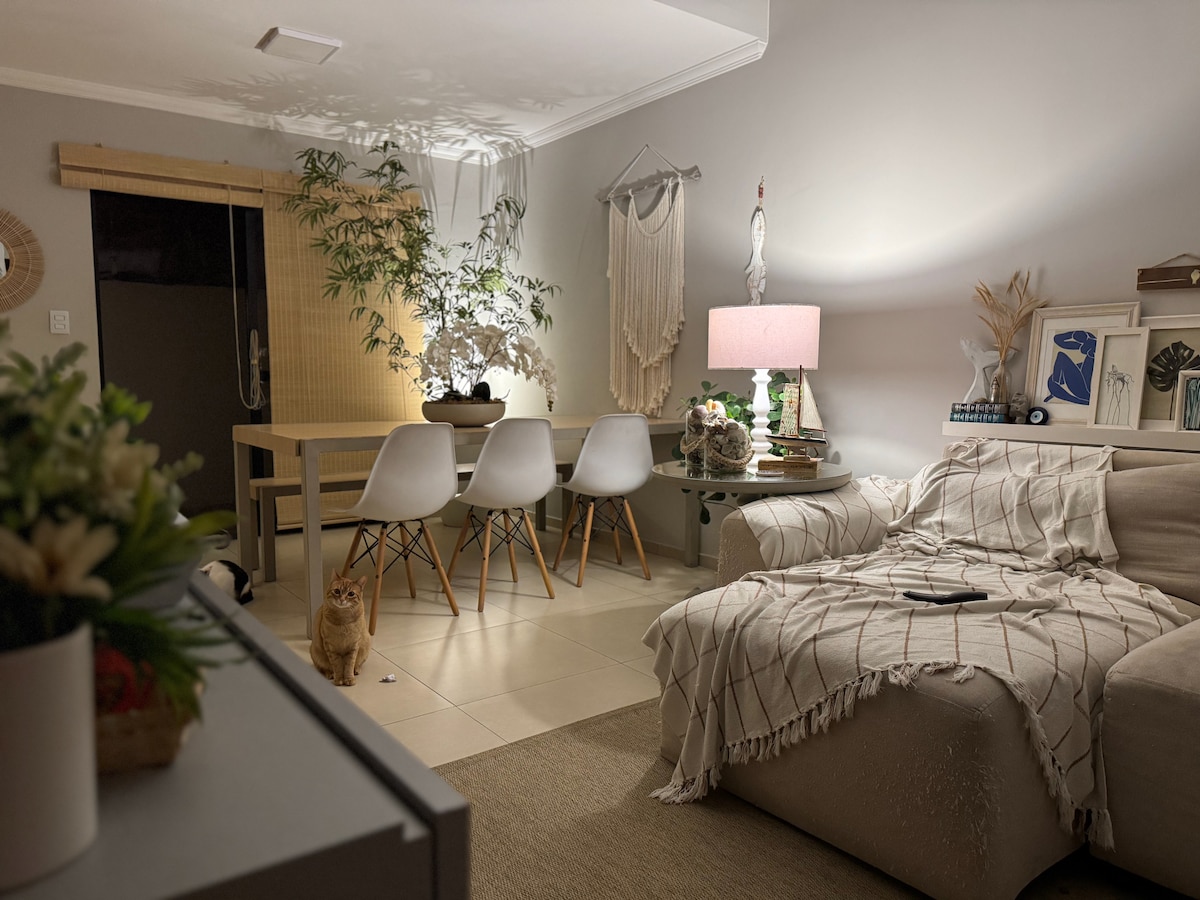 O ambiente é perfeito para quem procura conforto e praticidade para relaxar e aproveitar. Ambiente integrado: cama de casal, ar condicionado frio,TV , wi-fi 500 mg, mesa para refeições; Mini cozinha com Cooktop 2 bocas, microondas, cafeteira, geladeira, torradeira, , air fryer, jarra elétrica, sanduicheira, utensílios domésticos e roupas de cama. um sofá para criança dormir, cadeirinha pra bebê. OBS: Não oferecemos toalha de banho e produtos de higiene pessoal. não aceitamos pets.