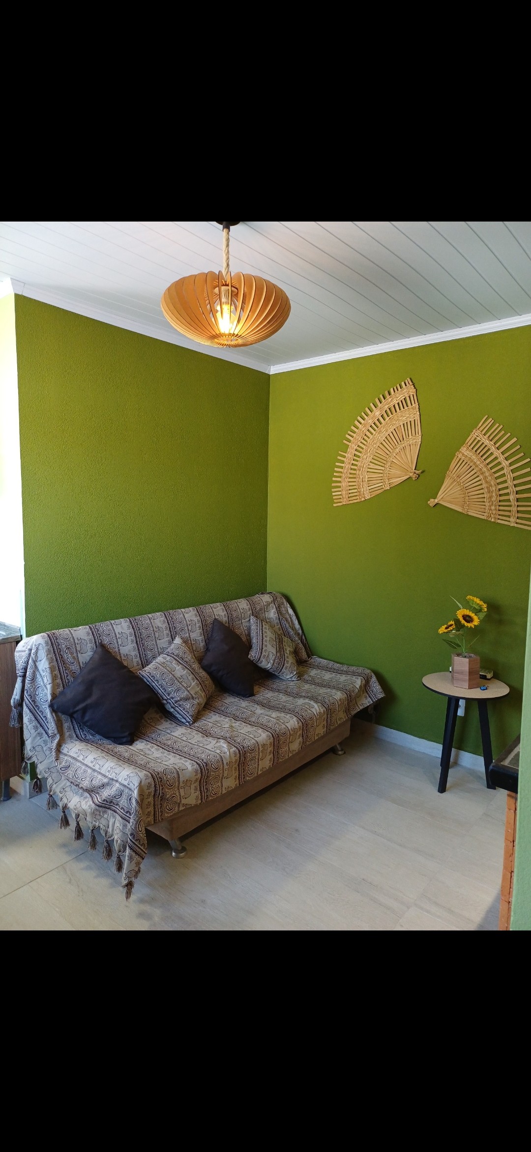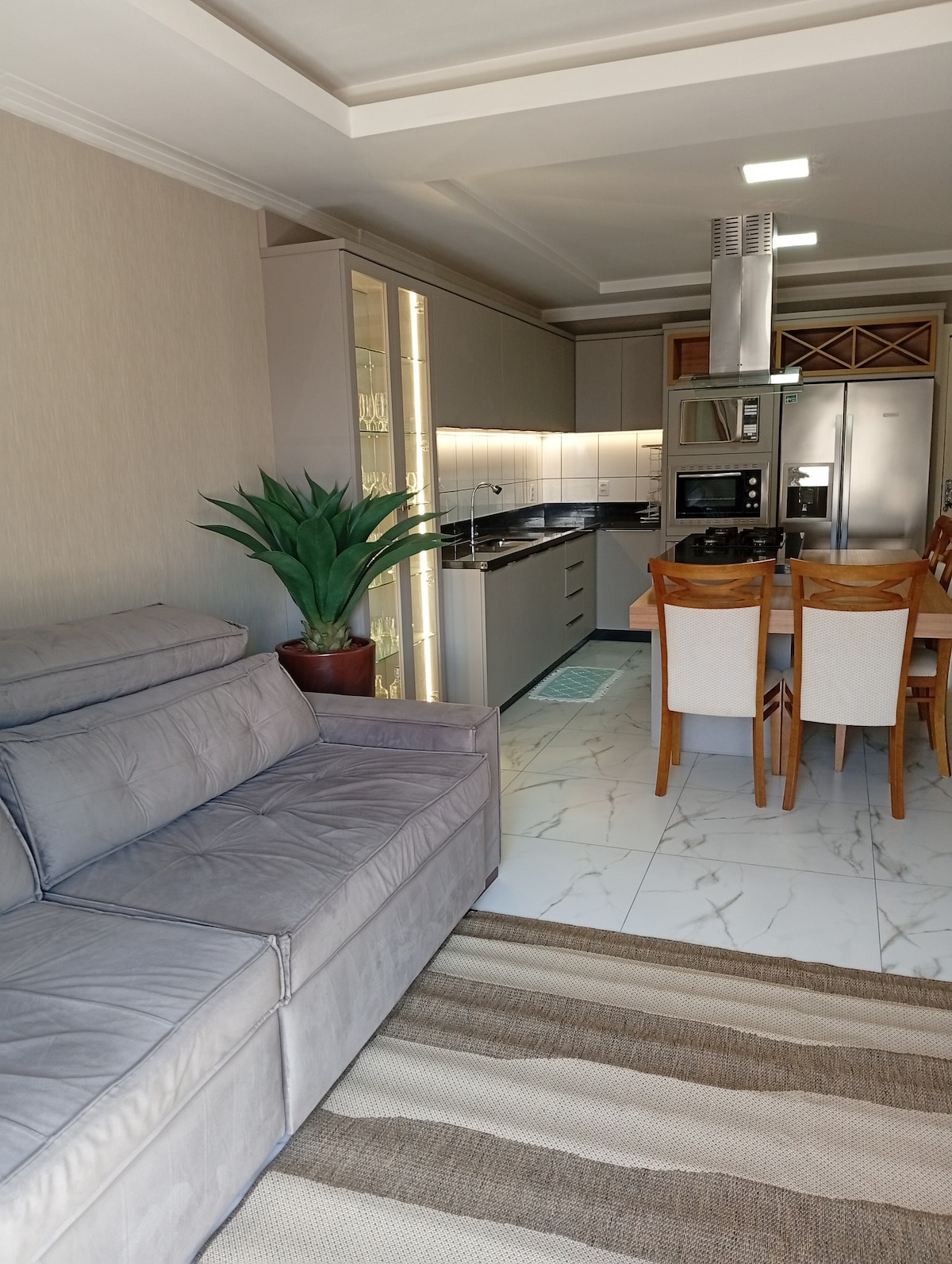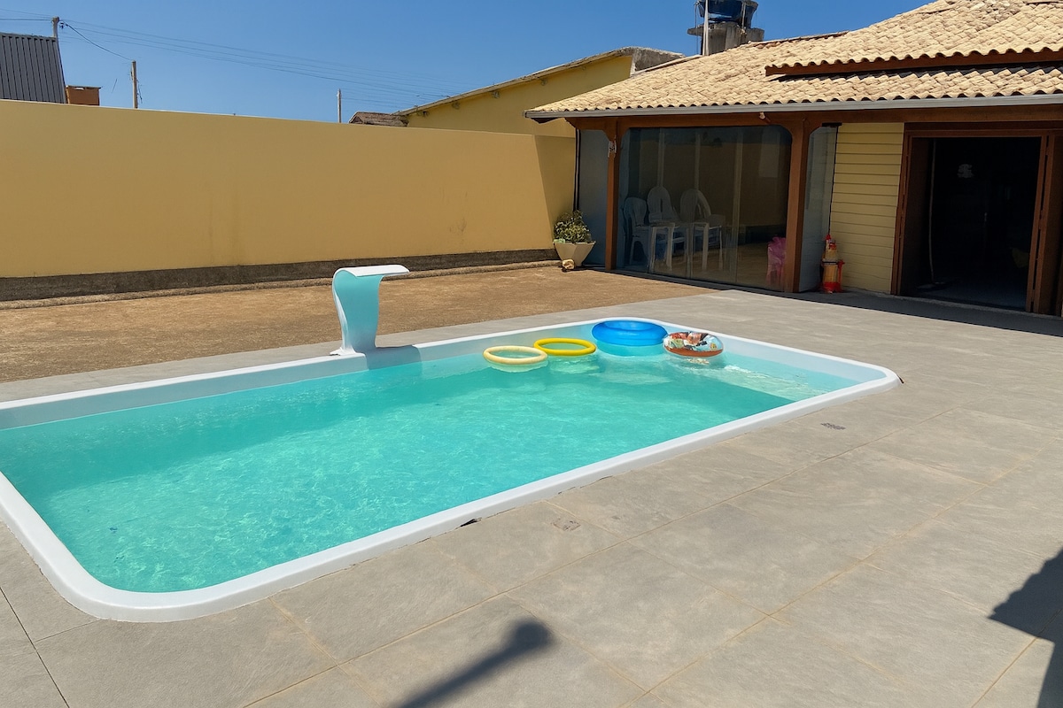 Um sobrado com ar condicionado wi-fi uma suíte com uma cama de casal e uma cama solteiro e u utilitário para guardar roupas.Sala cozinha conjugada um sofá- cama e um banheiro auxiliar. área de serviço com tanquinho e varal. O imóvel é totalmente privativo com pátio na frente com churrasqueira. A eletricidade tem franquia de 5kwh por dia se deixar o ar condicionado ligado direto ou temperatura extrema haverá excesso de consumo, sendo necessário pagar R$1,80 cada kWh excedido.
