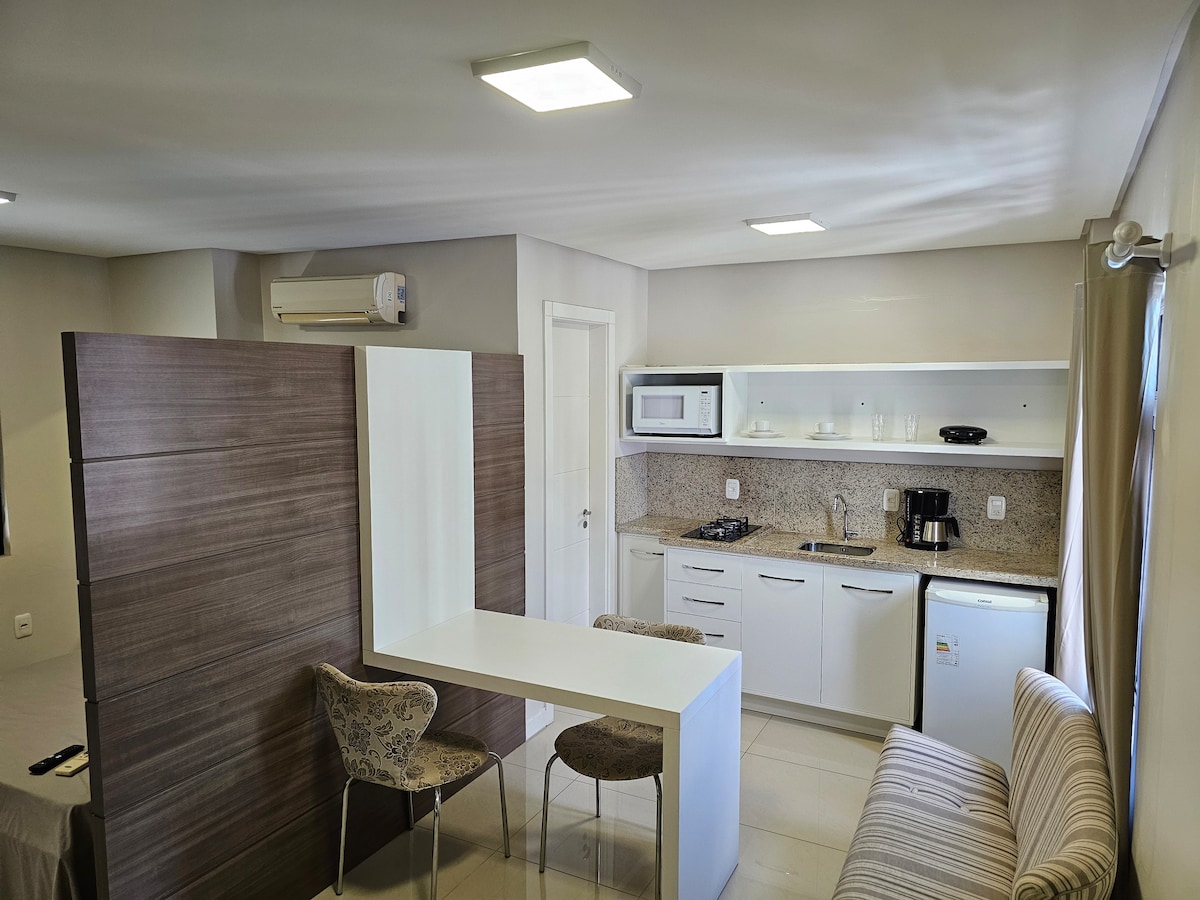 * COLCHÃO DE ALTA QUALIDADE * CHUVEIRO À GÁS * BANHEIRO EXTREMAMENTE LIMPO E HIGIENIZADO. * SMART TV LG DE 50" Apartamento studio central com câmeras de segurança no prédio. Completamente mobiliado. Silencioso ao fechar as janelas, escuro ao fechar as cortinas. Academia a disposição. Garagem com fácil acesso e que permite caminhonetes do tipo HIlux, Ranger Raptor, Amarok... Na rua gastronômica: próximo de vários tipos de lanches e de excelentes restaurantes.