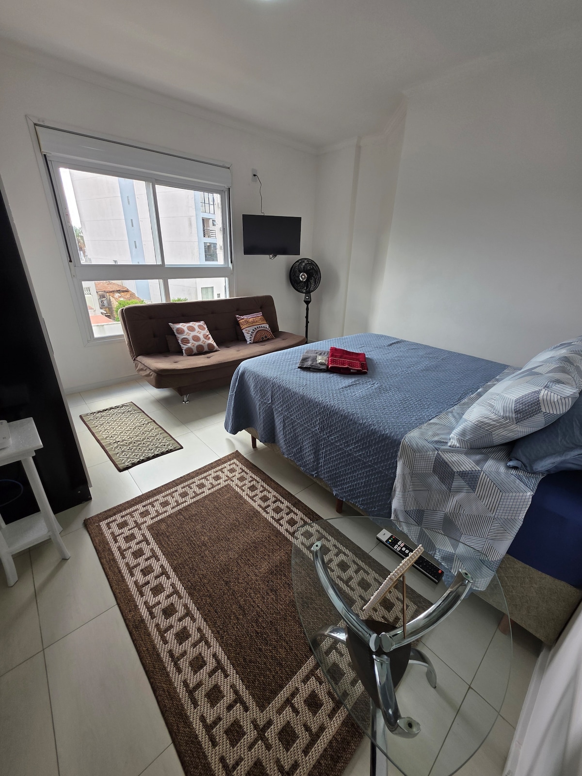 Aproveite o acesso fácil a tudo o que precisar, bancos, supermercado, farmácias, neste apartamento muito bem-localizado. Com um quarto grande, acomoda 1 casal na cama de casal e mais uma pessoa em uma cama de solteiro. Também tem o sofá com chaise na sala. Mobiliado e com todos os utensílios de cozinha, cama e banho. O estacionamento é coberto. Acesso com 4 lances de escada, sem elevador. SÓ ACEITAMOS RESERVA PELO AIRBNB.