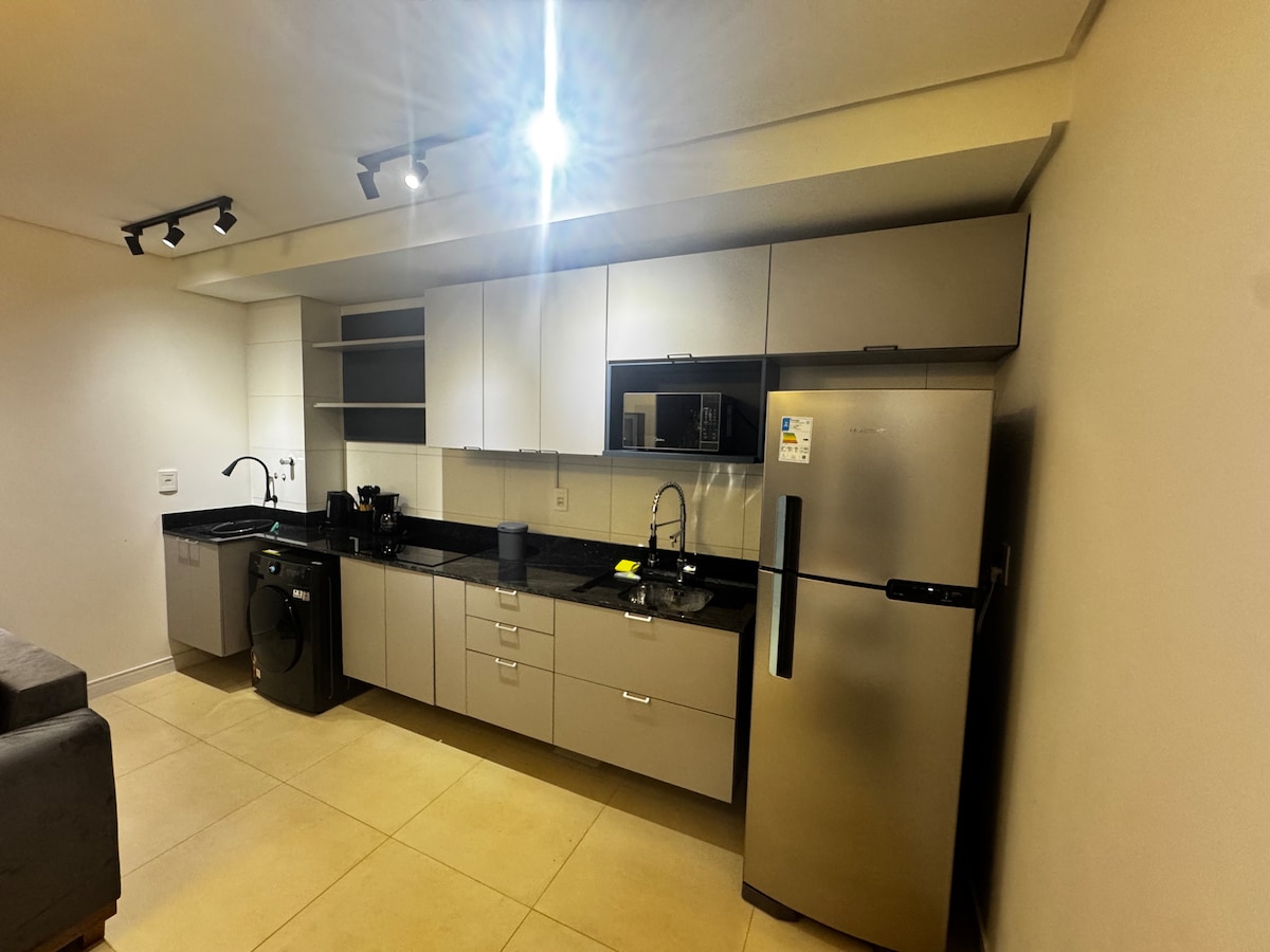 Lindo apto de 1 dorm. novo e moderno, para até 4 pessoas, com sofá cama. Próx. HSVP, mercados, Av Brasil, farmácias, praça, ponto de ônibus, shopping; Cozinha 100% equipada com churrasqueira, eletrodomésticos e utensílios novos. Amplo guarda roupa, quarto com cama queen. Possui ar cond. quente e frio, Wi-Fi, smart tv com canais abertos, 01 vaga de garagem. Andar alto com vista de frente (14°), prédio com academia sofisticada, salões de festa, piscina aquecida, lavanderia compartilhada.