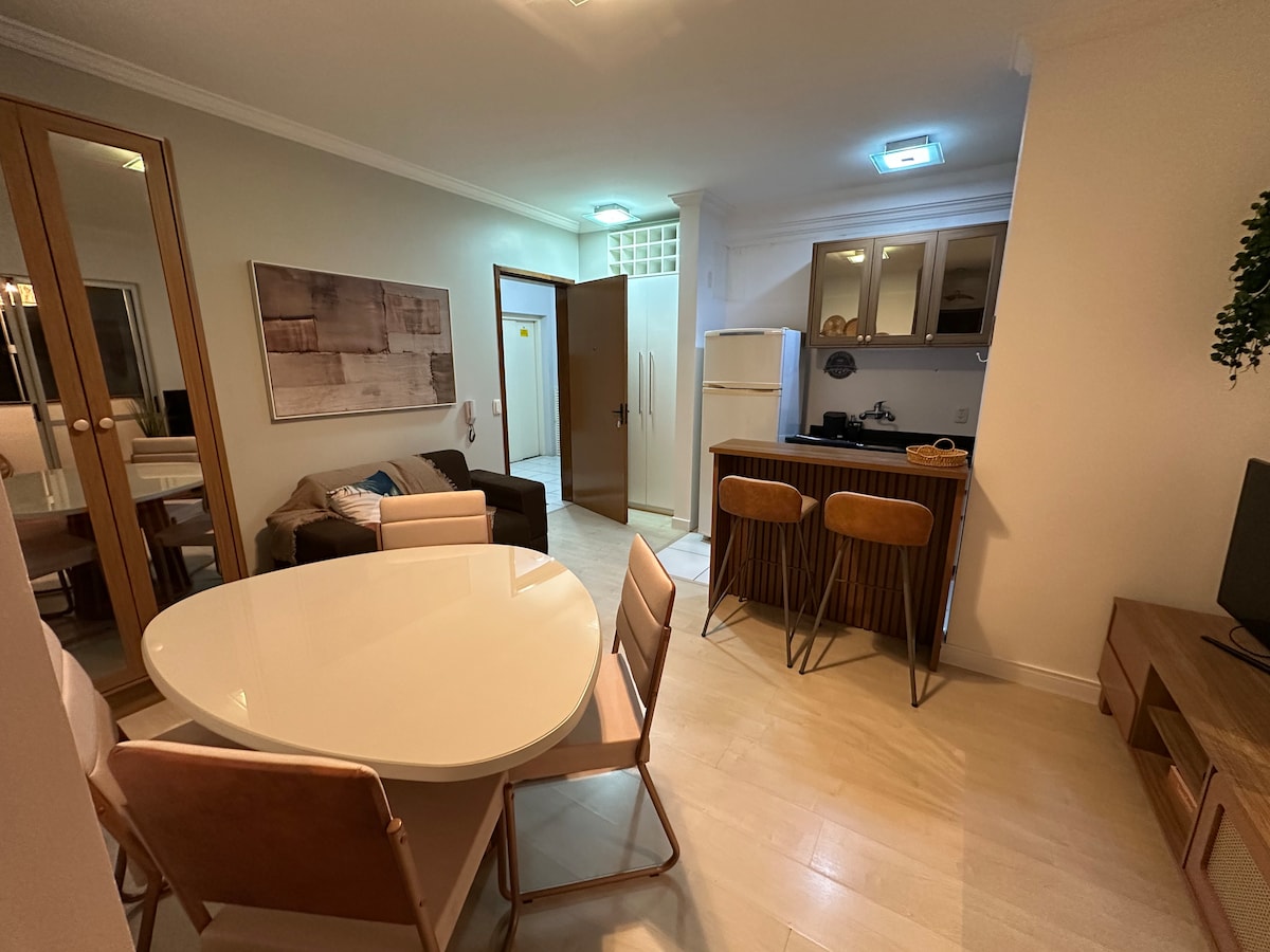 Um apartamento completo para você e sua família, com duas suítes com box de mola, tamanho casal e uma cozinha completa para fazer a sua refeição. Internet Wifi de boa qualidade e amplo espaço para trabalhar. Estacionamento coberto, no prédio. Você terá comodidade, conforto com camas e chuveiros de ótima qualidade. Em localização privilegiada, próximo a mercados, farmácias, padarias e restaurantes. Também esta a duas quadras do hospital de Clinicas e três quadras do Hospital Pronto Clinicas.