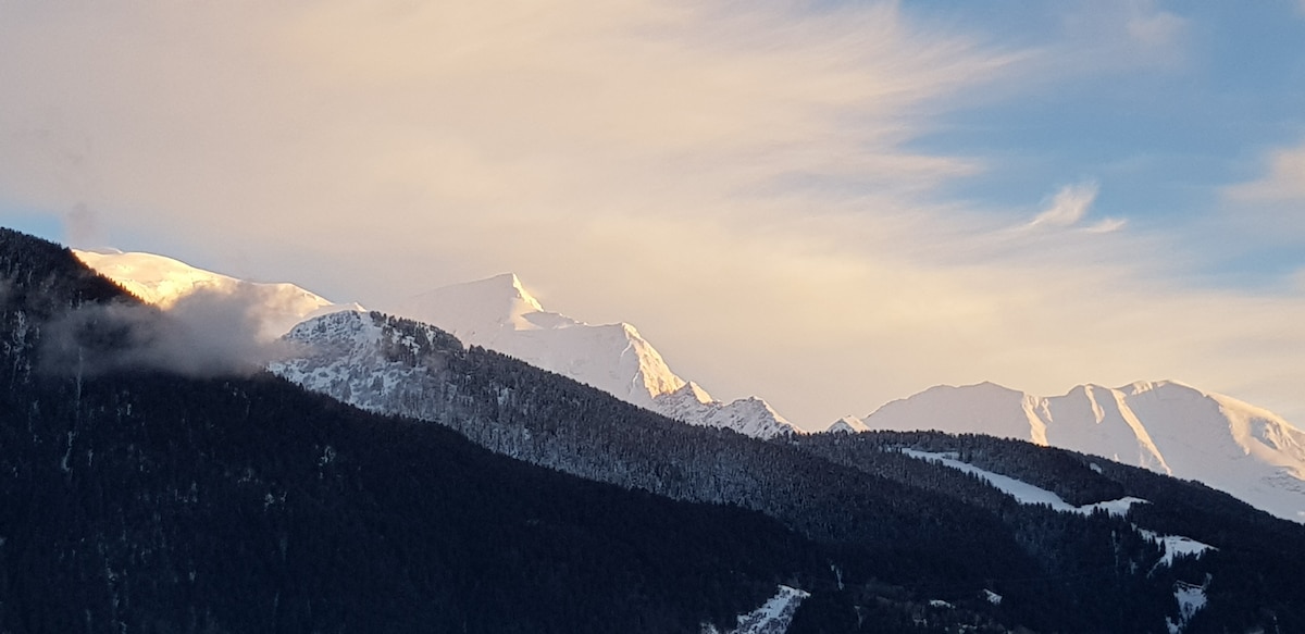 宁静的单间公寓,可欣赏勃朗峰的美景