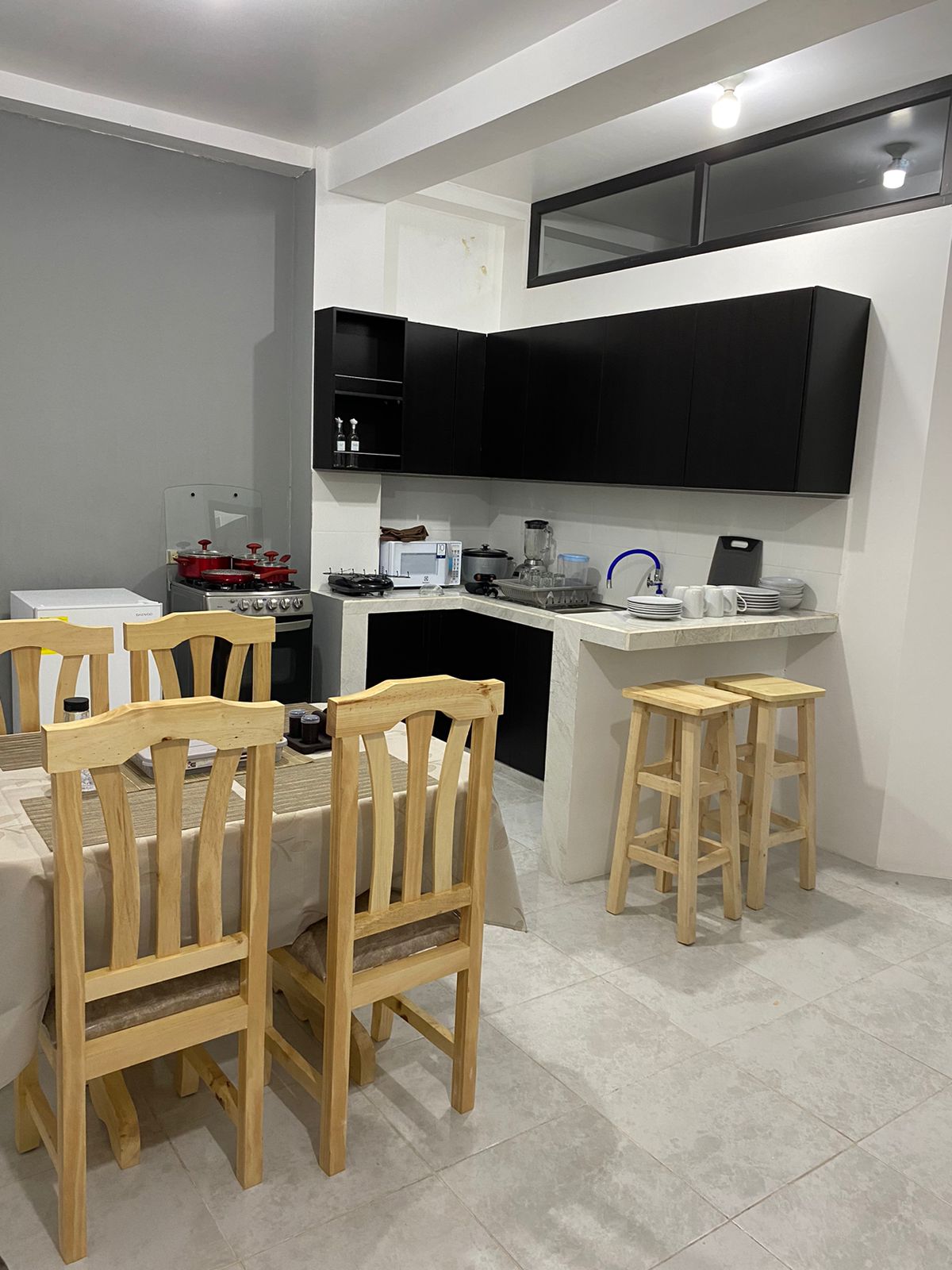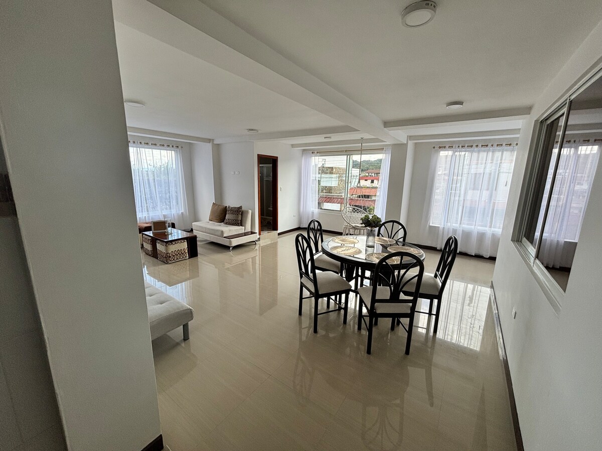 Bienvenido a Casa Gallegos, tu refugio moderno y cómodo en uno de los barrios más tranquilos y mejor conectados de la ciudad. Ideal para familias, grupos de amigos o viajeros con mascotas responsables. Ubicado cerca del centro y del casco turístico, con parqueadero dentro de las instalaciones. Este departamento independiente y totalmente equipado ofrece espacio para hasta 6 personas. Disfruta de una excelente iluminación natural, amplios ventanales y una decoración acogedora de estilo moderno.