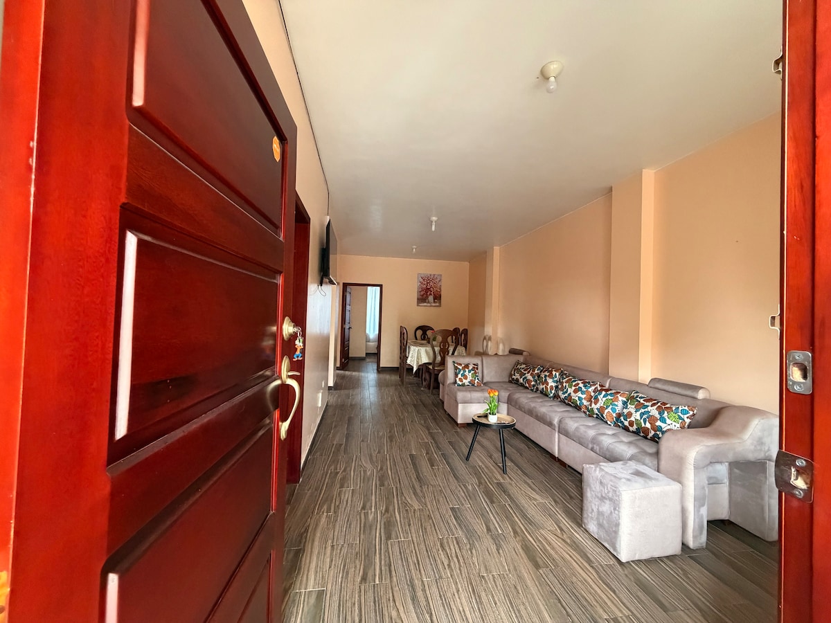 Bienvenidos a nuestro acogedor y equipado dpto. en Puyo, la puerta de entrada a la Amazonía ecuatoriana. Nuestro espacio es perfecto para parejas, familias grandes (hasta 7 personas, en acomodación doble) amigos, que buscan explorar la región, o que nos visitan por trabajo/eventos familiares, sea para estancias cortas o largas. Desde este alojamiento, el grupo podrá disfrutar de fácil acceso a todo, se encuentra a pocos pasos del terminal terrestre, hospitales, restaurantes, tiendas, plazas.