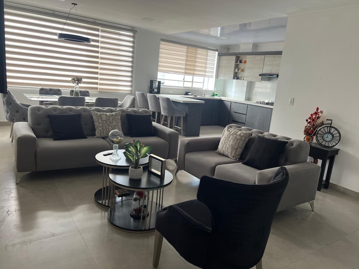 Le brindamos un perfecto descanso junto a su familia en este alojamiento con elegancia y estilo. disponemos Agua Caliente y Parqueadero, nuestros espacios son diseñados con amor para que puedas cocinar, compartir y disfrutar tu estadía. ✨ Segundo Piso, frente a la calle, zona tranquila, céntrica, cerca varios sitios para comer, cerca al Tuti y Akí A 3 cuadras del parque acuático Morete Puyo, Cerca del Terminal