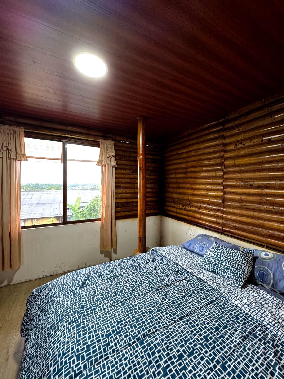 Una cabaña en medio de la naturaleza, cerca de la ciudad pero también muy cerca de paradas de buses, tiendas y sitios de interés. Contamos con un mirador y un río limpio, junto a nuestra propiedad hay piscinas, además tenemos servicio de cafetería en nuestra casa principal. Es un lindo lugar para parejas o familias.