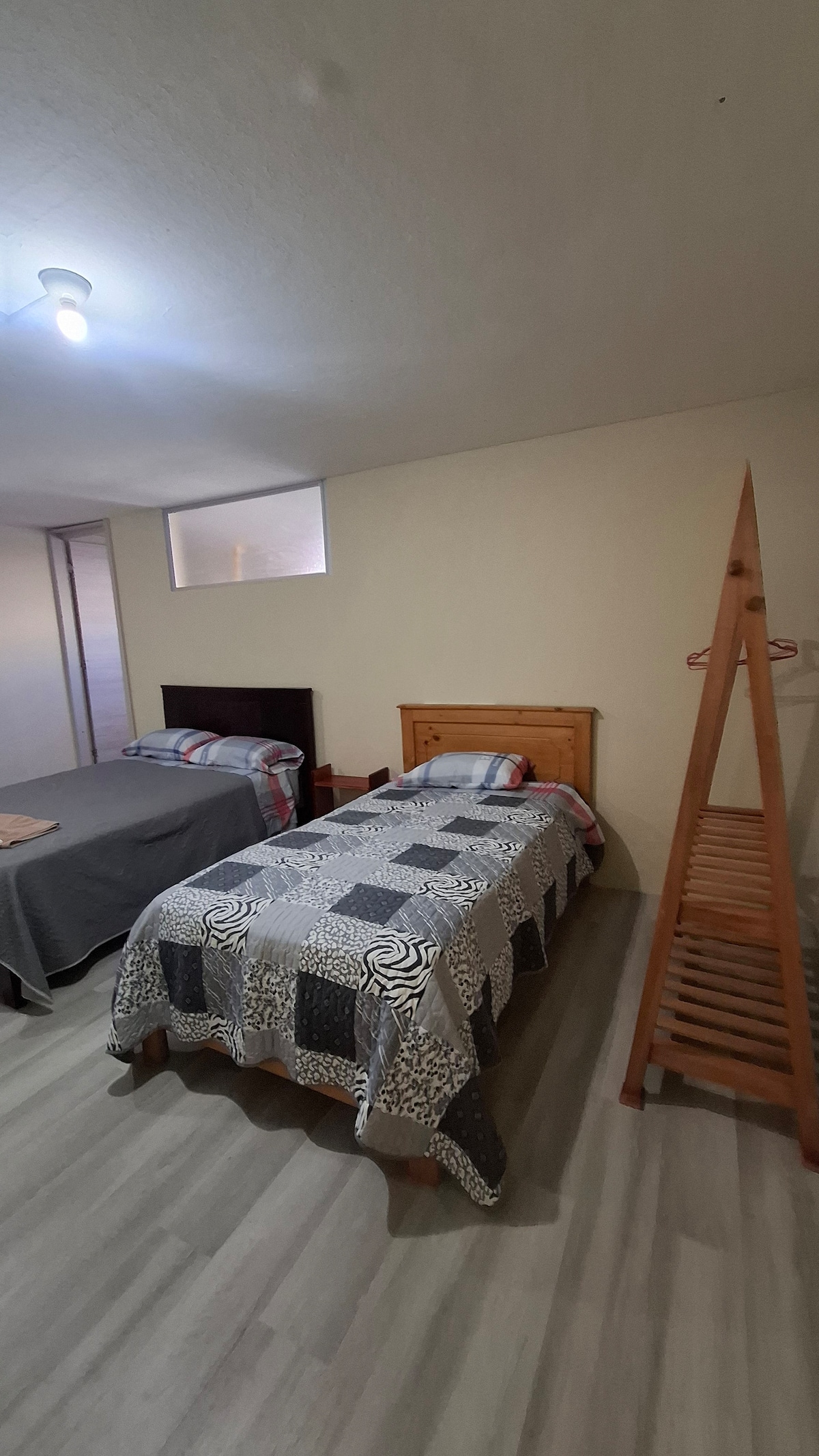 Relájate con toda la familia en nuestra suite completa con área de cocina, baño privado y dos camas (una de dos plazas y otra de plaza y media), ubicada en zona tranquila y segura, ideal para familias pequeñas, parejas o quienes buscan comodidad e independencia.