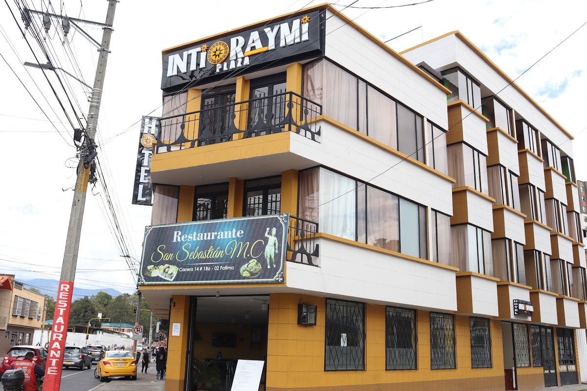 Hotel Inti Raymi Plaza es tu punto de descanso en el corazón de Pasto. Ofrecemos habitaciones sencillas y dobles, ideales para turistas, viajeros de trabajo y familias. Estamos ubicados cerca de los principales atractivos turísticos, transporte y restaurantes. WiFi rápido, comodidad, limpieza y atención personalizada. Inspirado en la energía del sol y en la magia de nuestra hermosa ciudad de Pasto, IntiRaymi es un refugio de comodidad, tranquilidad y calidez.