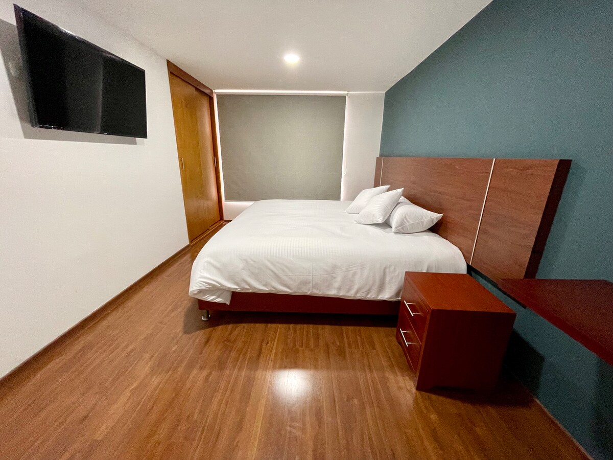 Disfruta de una experiencia única en un espacio que combine elegancia Confort y limpieza impecable. Cada detalle ha sido cuidadosamente diseñado para brindarte un ambiente acogedor y sofisticado, ideal para descansar o trabajar. Nuestra propiedad es ofrecerte comodidad en un entorno moderno, lleno de estilo y calidez. Ubicación estratégica espacios impecables y todo lo necesario para una estadía inolvidable. Vive la mezcla perfecta de lujo y bienestar. ¡ Te esperamos a ver ! .