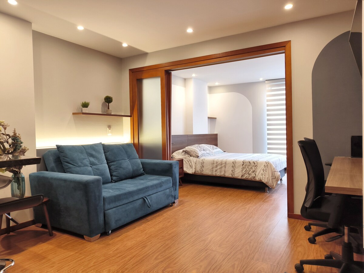 Aparta estudio amoblado con todo lo necesario para que disfrutes de una agradable experiencia, cuenta con servicios de Internet, Agua, luz, y gas Excelente ubicación, cerca a 5 hospitales , zona rosa de la Cuidad, 5 universidades, servicio de Portería. Servicio de lavandería, sala de cine, zona bbq , salón de eventos por un costo adicional, TV Android con Netflix. Encantados de recibirte en nuestro alojamiento.