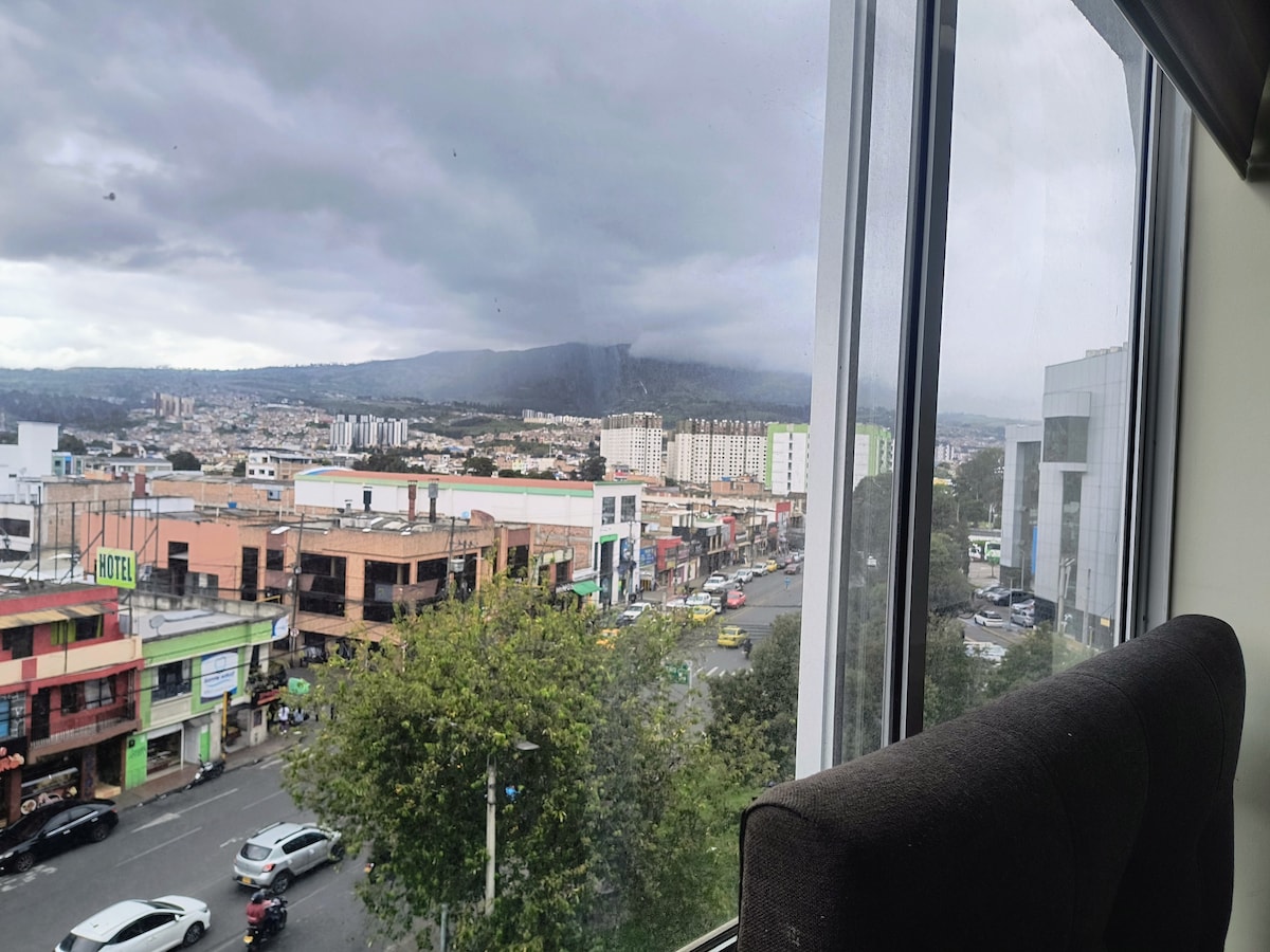 Welcome to Deluxe Pasto Experience! Enjoy a unique stay in our modern and cozy studio apartment located in the heart of Pasto. Designed to offer an experience of luxury and comfort, this space is perfect for travelers looking for an unforgettable stay and a beautiful view of the volcano. *King-size bed 2mt x 2mt ** Private covered free parking