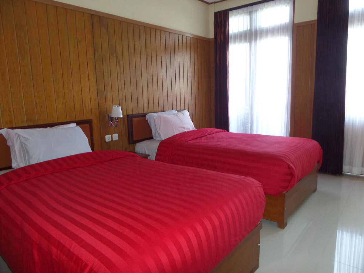 Situated on 31Km from Mt. Bromo. The bedroom feature 2 double beds with size of 160cm x 200cm. It has a private bathroom with hot shower and modern toilet. It takes about 45 minutes by car to the gate of National Park of Bromo Tengger Semeru and it takes about 30 minutes to Madakaripura waterfall.