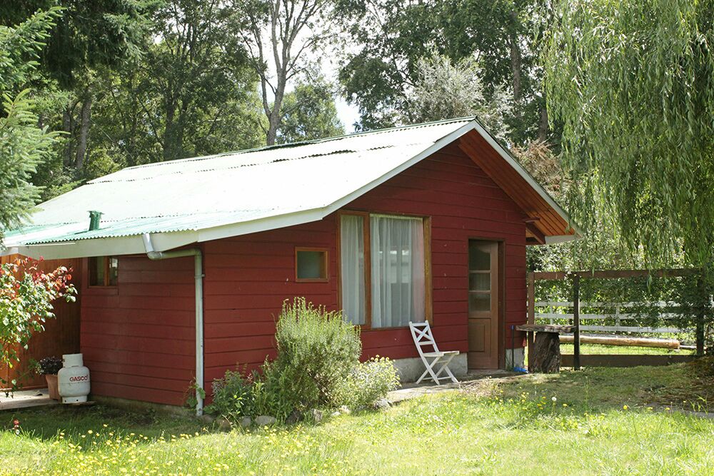 Pequeña cabaña rodeada de árboles frutales y naturaleza muy acogedora, el dormitorio matrimonial está en una buhardilla, un sofa cama en el primer piso, con terraza , piscina , estacionamiento y pequeña parrilla, ideal para un matrimonio sólo , con un hijo o acompañante.Disponemos de lavandería el costo por 10 kgs. es de $ 5.000.- incluye secado. La calefacción es solo para el invierno. Arrendamos kayac para 2 personas y Canoa canadiense