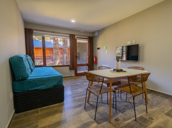 Espacio que llama a la tranquilidad y el descanso. Buena iluminación. Hermosa vista. Muy acogedor. Cuenta con cocina equipada. Sofá cama de 1.5 plazas en espacio común y cama King en dormitorio. Ideal para desconectarse de la rutina. - Incluye ropa de cama, no incluye toallas. - Ideal ir con vehículo, ya que se encuentra a 1,5 kms. de la ciudad. - Wifi - Sanitización con Ozono.