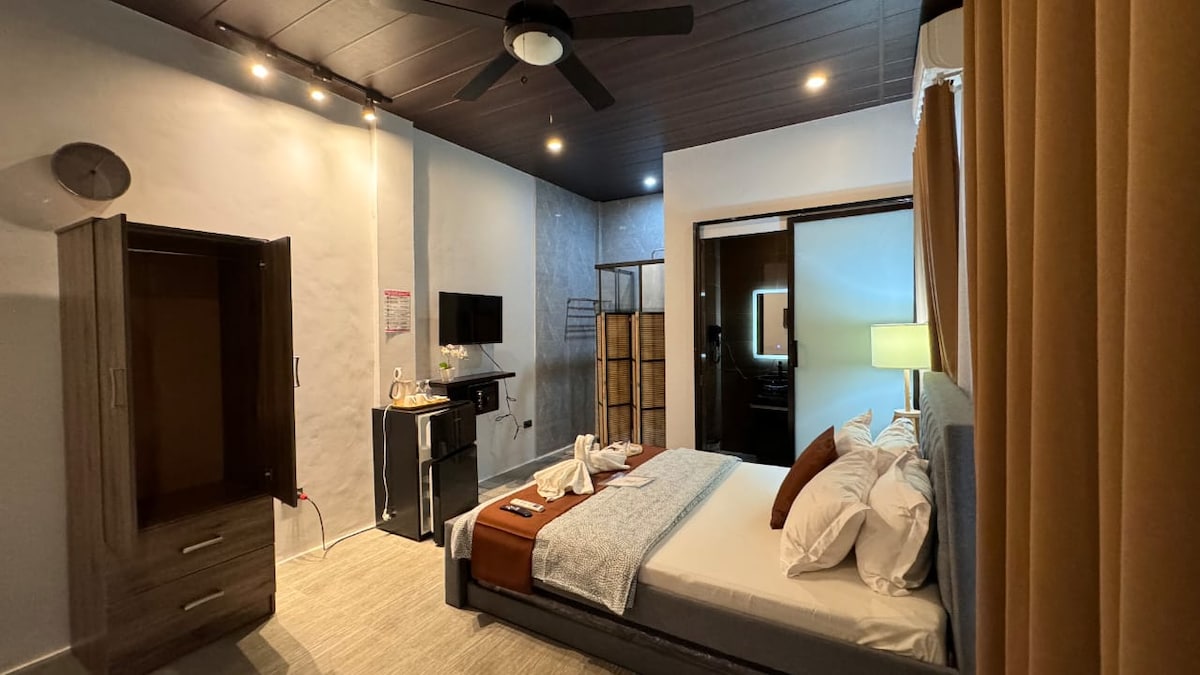 Staycation at Patar White Sand Beach -Fully air conditioned room -Bunk bed w/ extra floor mattress -with wall fan -mini sofa -whole body mirror -Indoor bathroom -Own kitchen -Dining & kitchen utensils -free use double burner gas stove -Dining table and chairs -Strong wifi connection -mini-karaoke -Refrigerator -Free parking -Overlooking & Griller area at Rooftop (Located on the Second floor with 15steps) -may not be accessible for young children ,seniors or people w/ disability