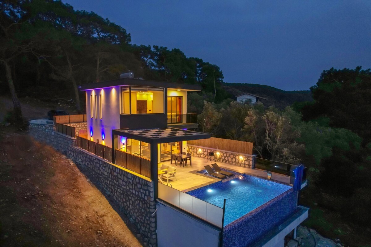Deniz manzaralı ve sakin bir konumda bulunan villamız, balayı çiftleri ve huzurlu bir tatil arayanlar için idealdir. Üst katta jakuzi, banyo, balkon ve çift kişilik yatak; alt katta ise Amerikan mutfak, TV, oturma alanı, yemek masası ve havuz terasına çıkış bulunmaktadır. Panoramik manzara eşliğinde konforlu bir tatil deneyimi sunan villamızda sizi ağırlamaktan mutluluk duyarız.