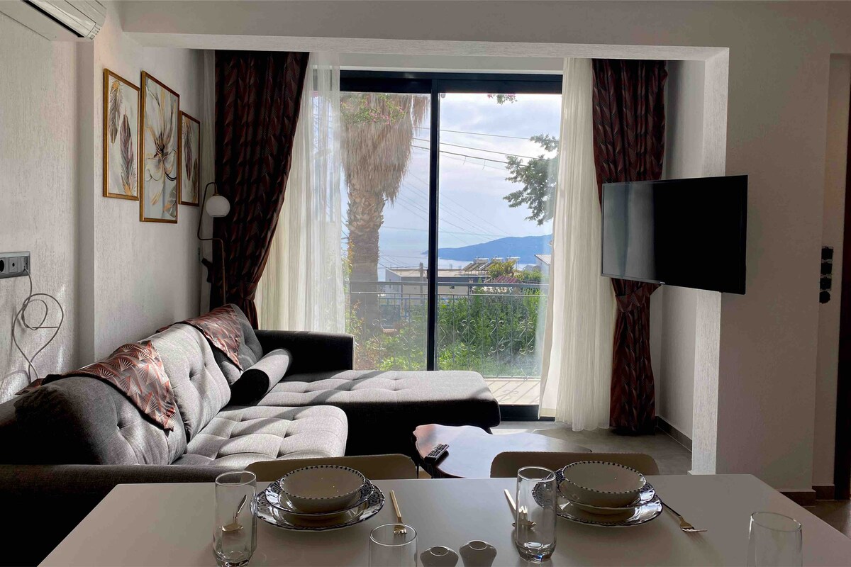 Evimiz bir yatak odalı olup 2 tarafı kapalı önü açık deniz manzarası İle eşsiz görünüme şahiptir . Yunan adalarını ve Meisi izleyebileceğiniz bu manzarada sonsuz bir havuz vardr .. Villamızda çatal bıçak tabak vs mutfak araç gereçlerimiz mevcuttur .. Elektrikli ev aletlerimiz mevcuttur Villamızda jakuzi İle bütünleşen bir deniz manzarasında buluşablrsnz ayrıca soğuk havalarda dahi plazma ( elektrikli şömine ) İle ısınmanın keyfini yaşabilirsnz.. havuzun üzerinden köprü İle bahçeye ulaşablrsnz