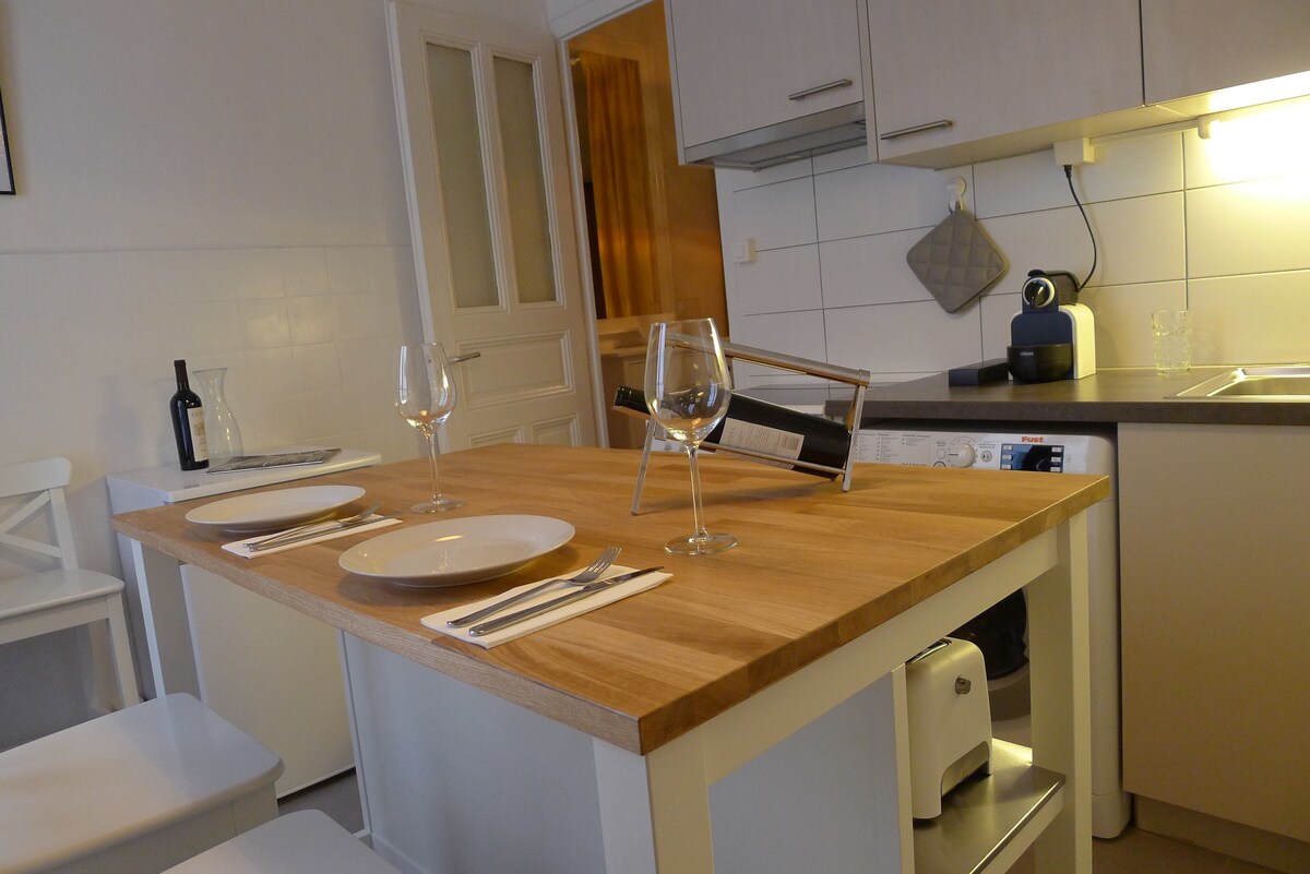 Profitez d'un sublime appartement élégant et central, en plein coeur de la vieille ville. Environ 80 m2 comme suit: -Une chambre lumineuse équipée d'un lit double, écran plat. -Salon spacieux doté d'un lit simple, un grand bureau et un canapé, donnant sur un espace vert. -Cuisine équipée, écran plat, lave linge. -Salle de bains douche italienne, WC, lavabo.