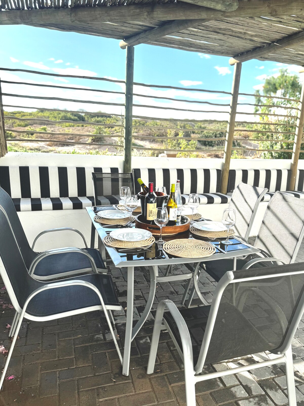 Kick back and relax in this calm, stylish space. This upstairs (1 flight stairs) 3 bedroom, 2 bathroom condo offers you a well equipped large living space with a gorgeous deck overlooking the sea. The pool is surrounded by a charming garden. This apartment is very well located in Bekbay, Paternoster- only a two minute walk to the beach as well as Paternoster Waterfront. Secure parking. No load shedding - large solar system. Small dogs sleeping in their own travel beds allowed upon request.