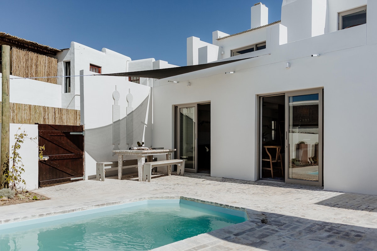 No more load-shedding at Hocus Pocus cottage! Perfect getaway with ground level living and kitchen area pouring directly onto the private wooden braai deck and into the plunge pool surrounded by a water-wise established garden! A short walk to a quiet beach, and walking distance to all restaurants and village hub. A beautiful comfortable and peaceful cottage, fitting in with the atmosphere of the village. Rustic, and an authentic spot to breath in the sea air and Paternoster spirit.