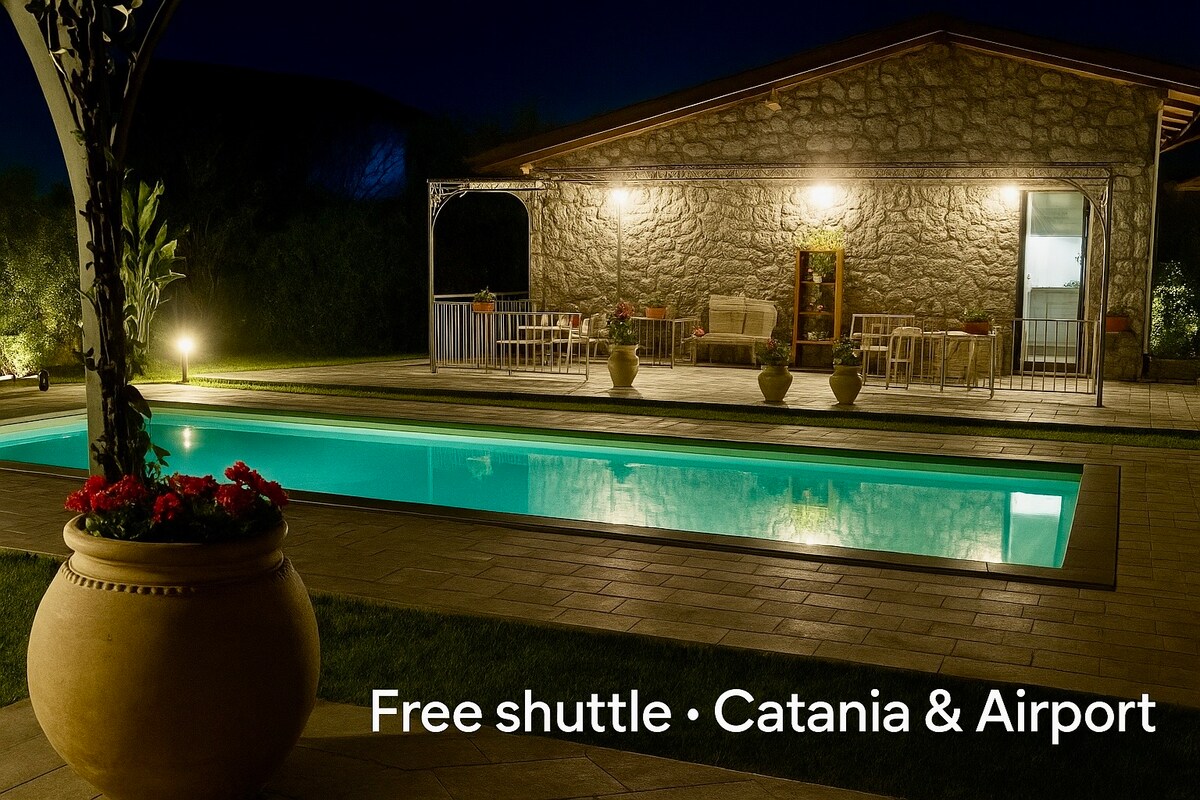 A pochi minuti dall’aeroporto e dal centro di Catania, il cottage situato all’interno della Villa Madonna di Loreto vi accoglie nel cuore della campagna siciliana. Circondato dal verde e da alberi secolari, offre una splendida piscina ad acqua salata ad uso esclusivo, parcheggio interno gratuito e una vista mozzafiato sull’Etna. Un rifugio di pace, comfort e privacy per vivere l’autentica bellezza della Sicilia. Se non vuoi noleggiare un’auto, ci pensiamo noi! Free shuttle • Catania & Airport