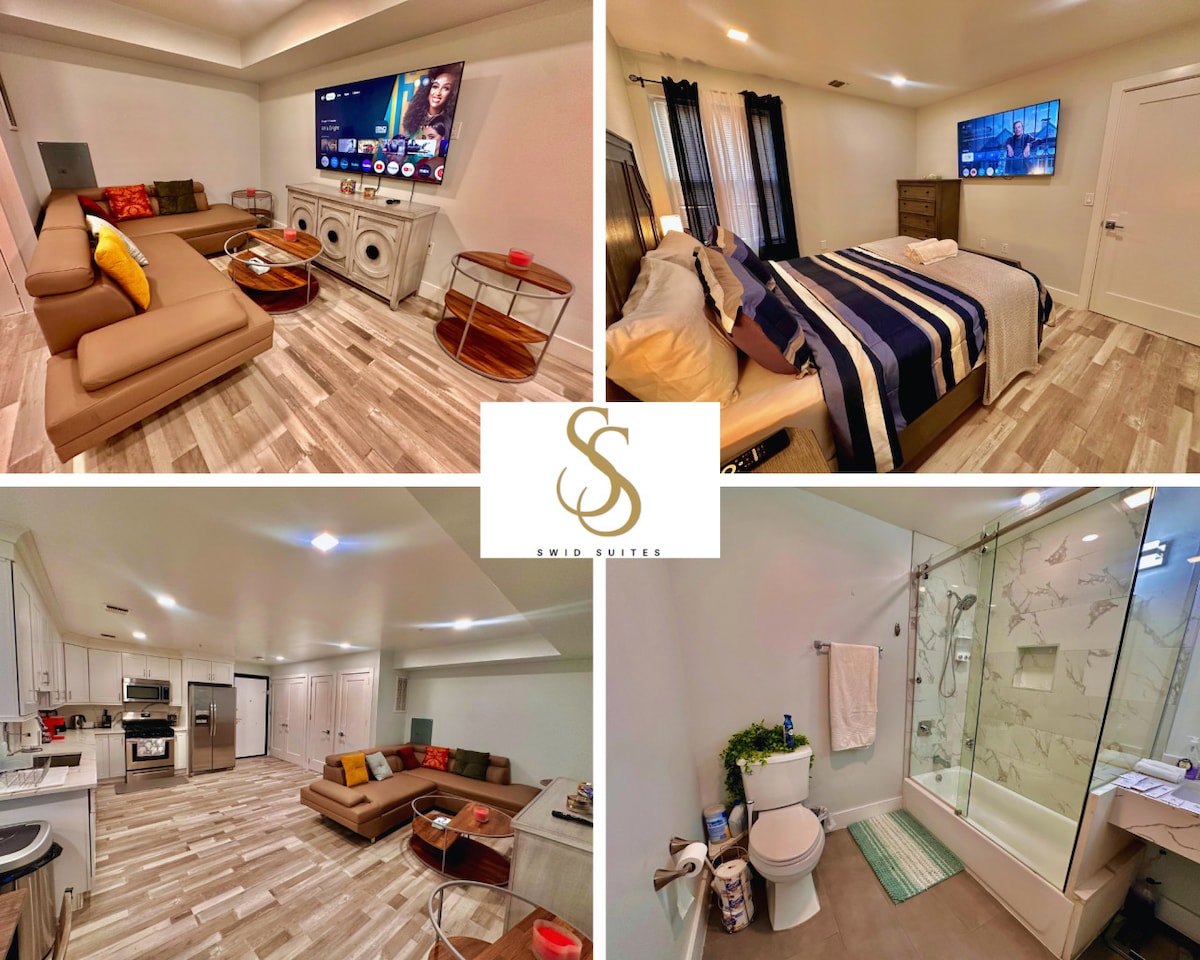 Enjoy a private, modern 2-bedroom suite with separate entrance and easy self check-in, just 25 minutes from NYC and 20 minutes from MetLife Stadium—perfect for concerts, NFL games, or city getaways. This stylish lower-level space sleeps 4 and features a fully equipped kitchen, Smart TV with streaming apps, modern décor, and total privacy. Convenient access to highways and public transportation makes exploring simple and stress-free.