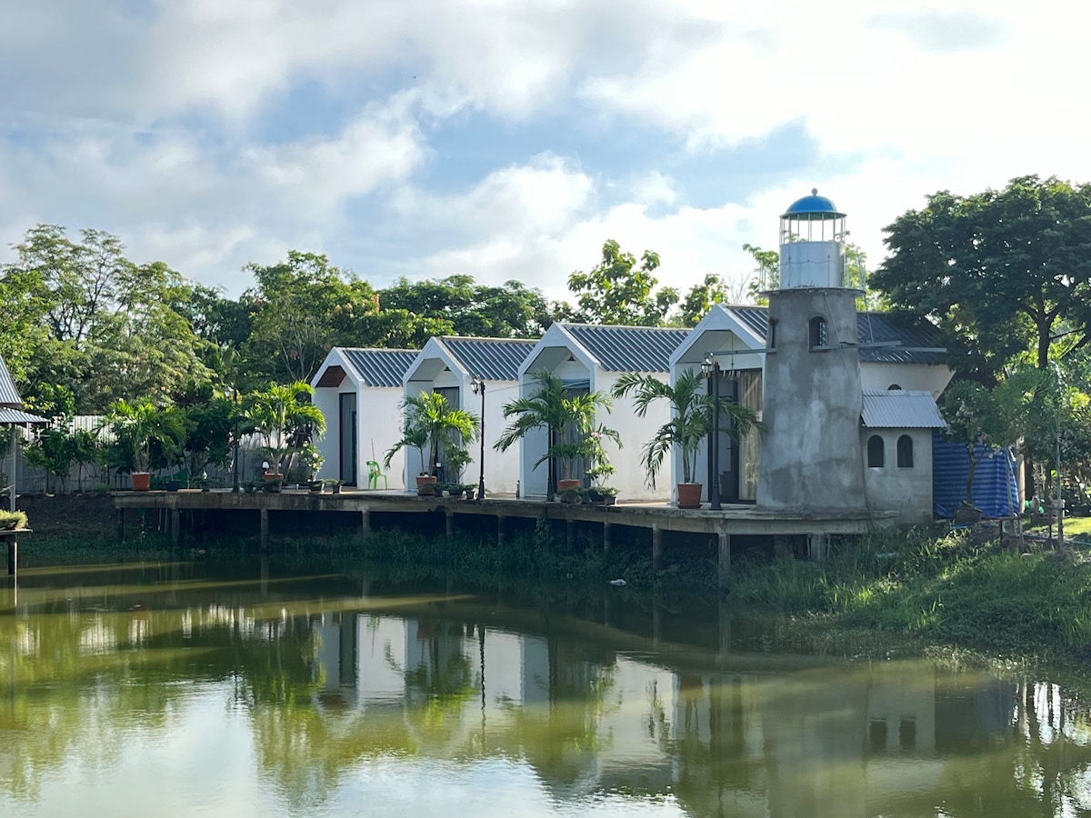 Only 1 hr drive from Bangkok, the cottage is in the middle of nature with endless panoramic view of the rice field that change with the seasons. This view captures an iconic traditional Central Thai way of life with the rice field. The cottage comes with free parking, two single beds that can be combined into 1 big bed, a pond to fish, a bbq grill and a binocular to look at birds as a perfect escape from the busy bustling city of Bangkok.