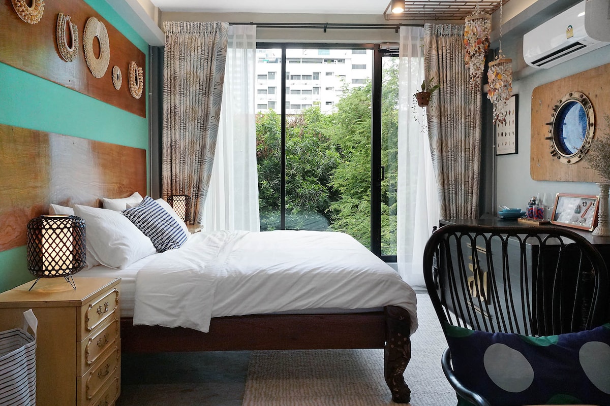 Stupid Stay Room No. 2-The playful mid-century design Unique Design Inside: This room is 1 of 6 uniquely designed spaces within "Stupid Stay," a designer casa connecting guests with Bangkok's art & design community. Mingle with locals & experience creative energy! Enjoy the convenience of nearby ICONSIAM & BTS Charoennakorn train station (just a 7-minute stroll away). Plus, you'll get to experience the real Bangkok scene with yummy street food and awesome sights like Wat Arun around the area.