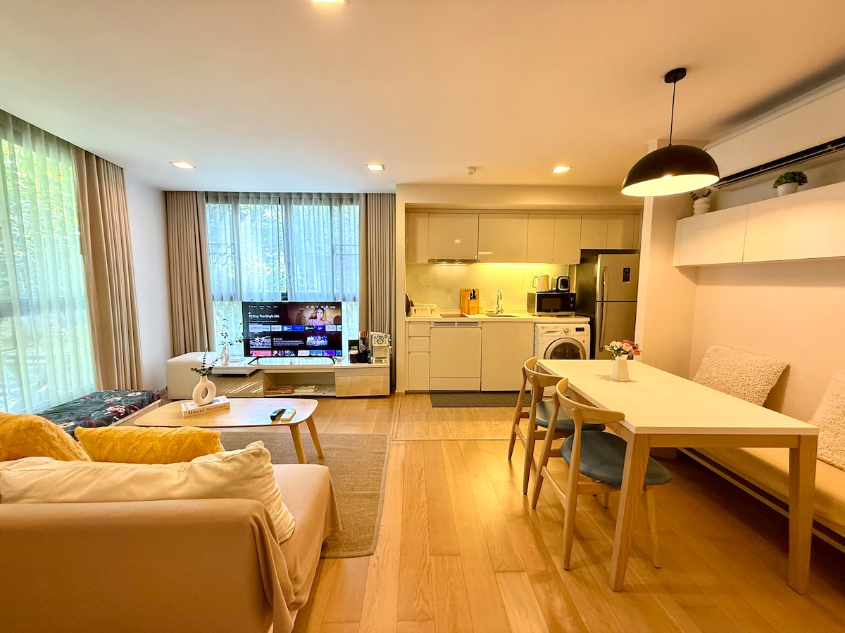 ⚠️ Kind reminder: The building is safe after the earthquake, with no damage inside my unit. 🏙️ Beautiful one-bedroom condo in the middle of the city 🏢 Luxurious high-rise apartment with an amazing swimming pool 🚶♀️ Only 1 min walking distance to DONKI Mall Thonglor 🚌 Free shuttle to BTS Ekkamai every 30 min 🍽️ Lots of restaurants and trendy bars nearby 📶 Newly installed high-speed WiFi with Internet TV 🛏️ Very spacious condo, enough for 3 people 🍳 Great convenience with full kitchen & washer